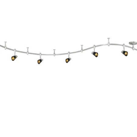 Item #S9401B5-BN ,Heads tilt 60 degrees and pan 350 degrees , Movable canopy,can change the shapes of flexible track easily to fit for your design preferences , Material:Iron + Aluminium + plastic, Black metal shade with brushed nickel fittings, Fixture dimension:5"W x 11"H x 108"D, Light source:6.5 Watts-450 lumens-3000 kelvins-90 CRI per head, ,35,000-hour LED bulb life ,5 integrated LEDs included, no bulbs to replace