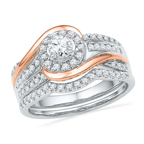 This splendid ring makes an ideal engagement or bridal band. It features a 0.5-carat diamond as its centerpiece which is encircled by another ring of sparkling stones. The exquisite metalwork also entices you with its golden and silvery shimmer.