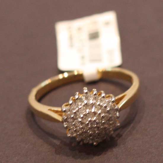 The admirable ladies' ring flaunts a well-executed design sculpted with first-rate 10K yellow gold. The lustrous 4-prong setting is delicately crafted with twinkling diamonds, setting off a romantic flair with irresistible beauty. This beautiful ring makes a heart-capturing piece for a perfect proposal.