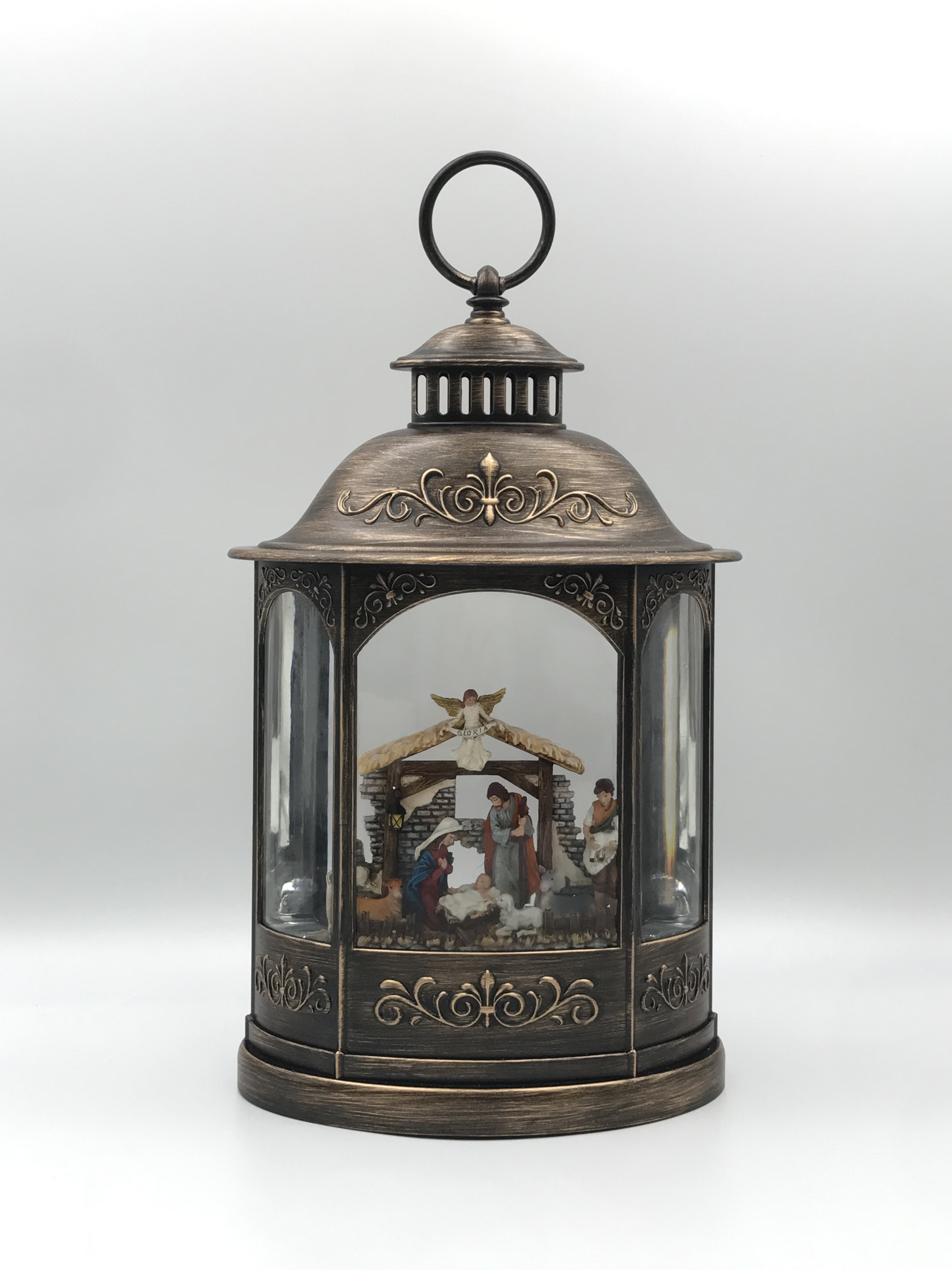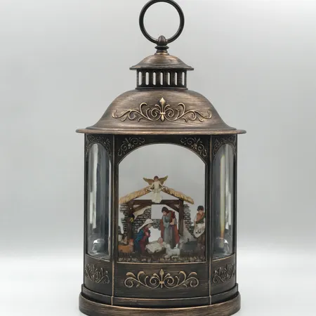 11.25"H LED NATIVITY PLASTIC WATER LANTERN GLITTER SPINNER