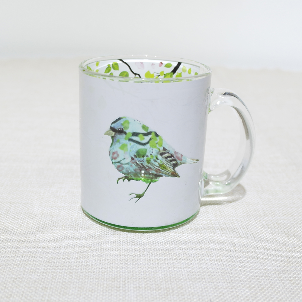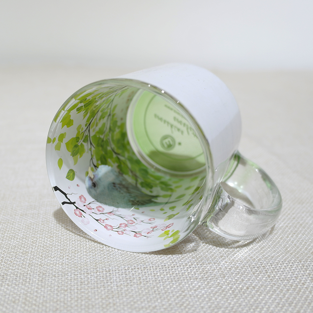 11oz Glass Coffee Mug with Double Side Printing Animal Designs Hollow Out and Bottom Color Painting