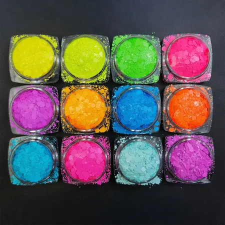 12 Colors Neon Chunky Glitter Set Fluorescent Hexagon Sequins UV Glow Powder for Festival Makeup Nail Art Resin Crafts DIY