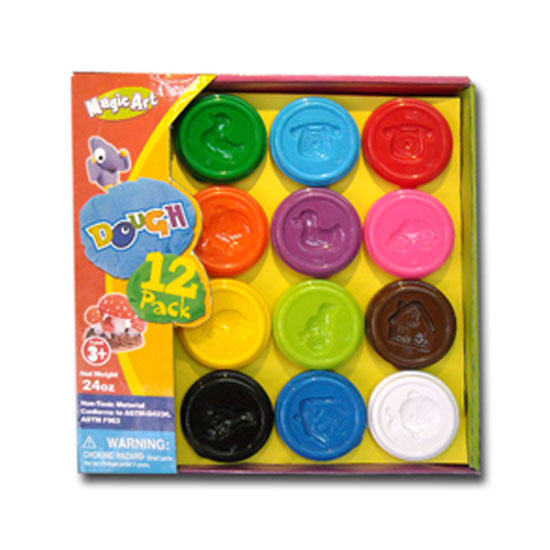 Here comes a 12-pack playdough box set. The lid of each playdough is carved with drawings like birds and houses, which serve as an effecive mold in the same time.