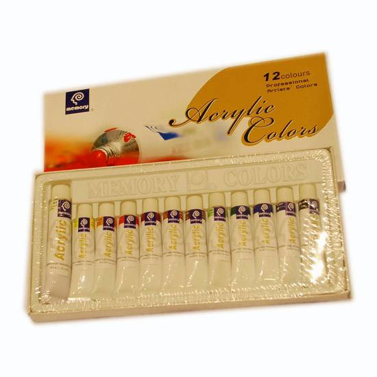 The 12-piece acrylic color set features 12 tubes of acrylic colors. They guarantee superior quality and vivid colors. These acrylic colors are great artist supplies for professional artists.