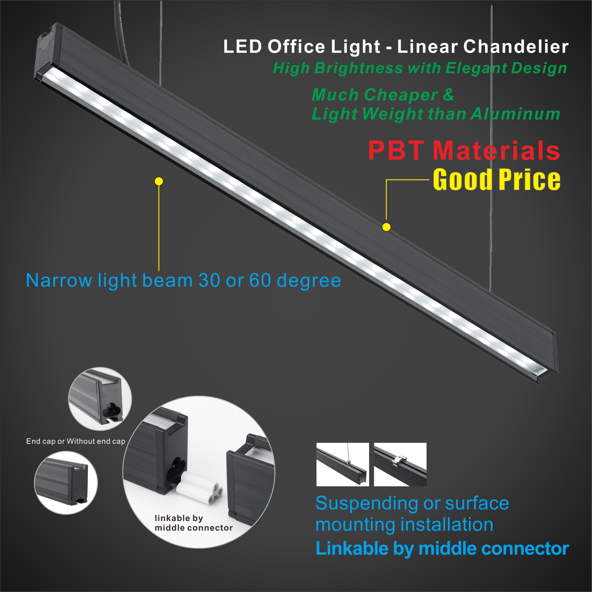 PBT alloy plastic Housing + inside driver + aluminum PCB leds +unlinkable Standard Accessories Bag : one set of suspension cable / two pcs of clip holders / 1.2m long power cable from the rear back