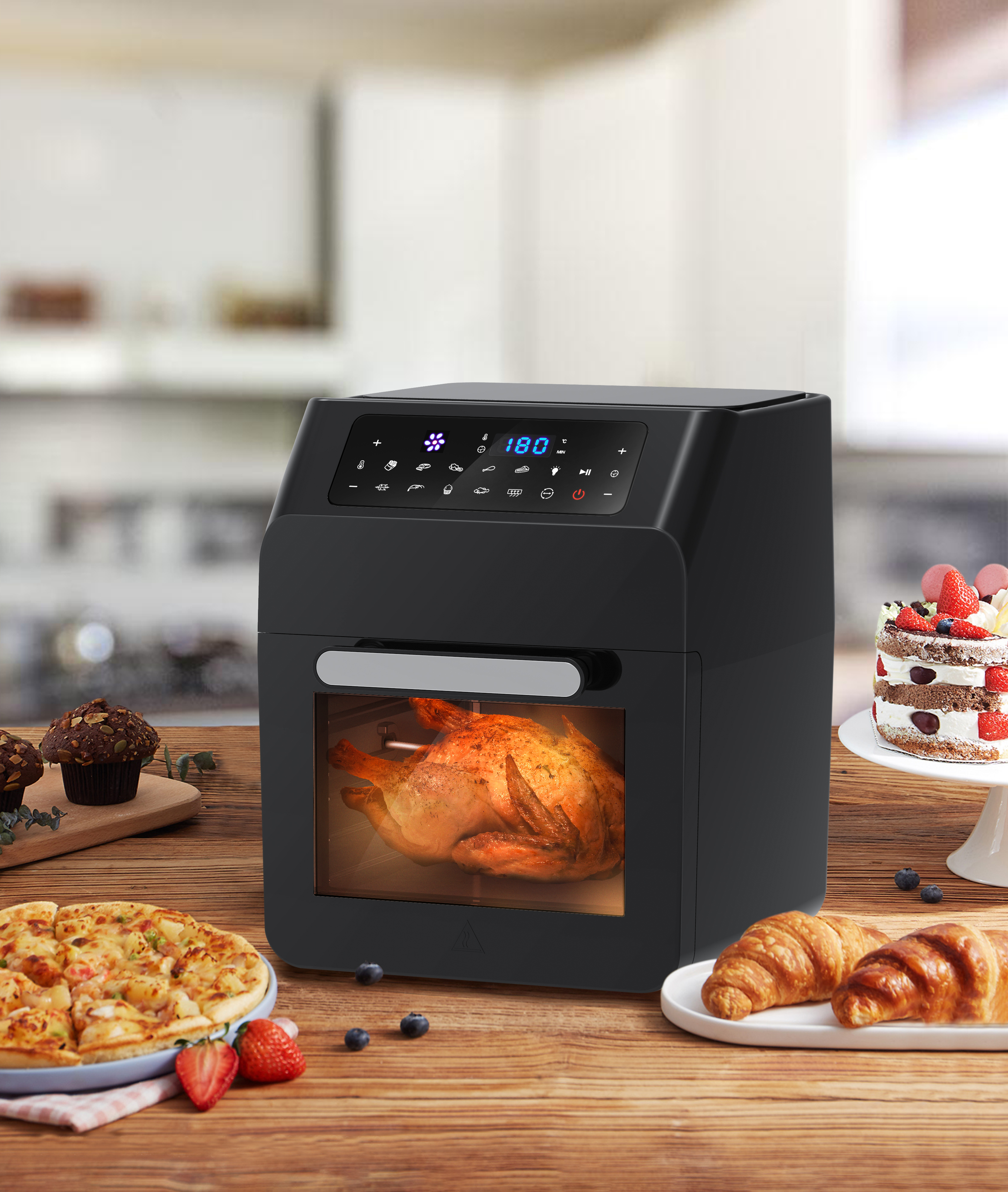 5) Multiple cooking functions: air fry, grill, bake, roast, toast, broil, pizza, dehydrate, reheat, keep warm.