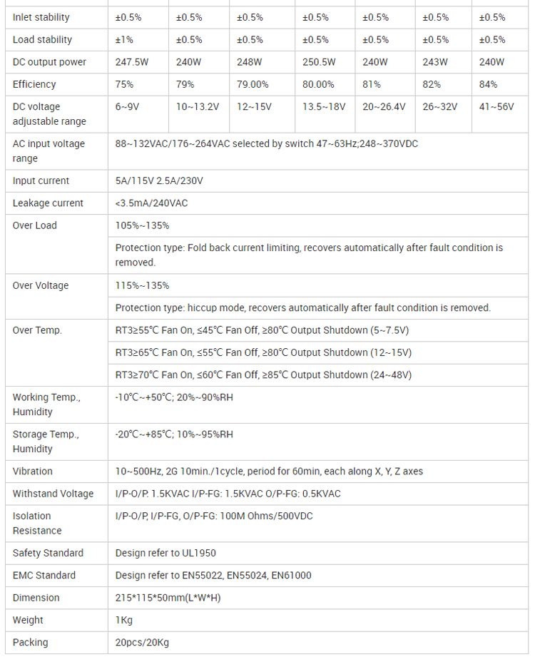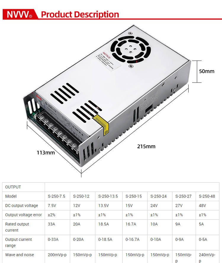 | S-250 250W switching power supply | ||||||