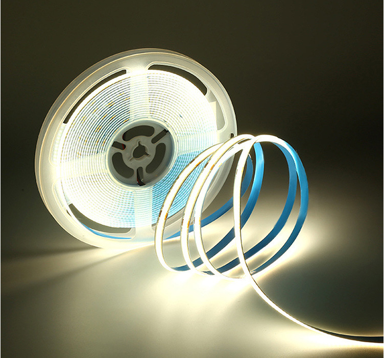 COB [ chip on board ) strips are made with flip-chips on the PCB, unlike traditional LED strips are made with SMD on the PCB. Because of the mini size of chips, we could put a lot of chips on the PCB, like 528 chips or 320 chips on single-meter PCB.
