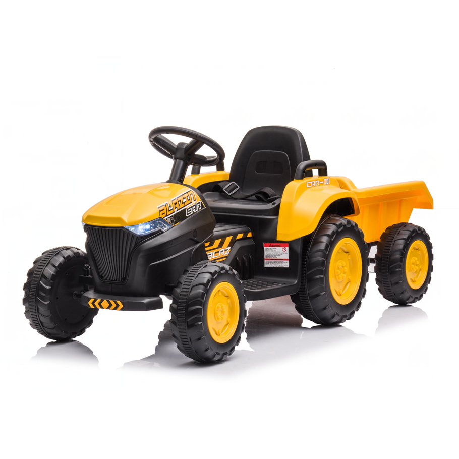 One button start, engine sound when switching on, headlights, forward and reverse, multifunctional music player, power display, volume adjustment, USB socket, MP3 socket, rear trailer can be manually flipped.