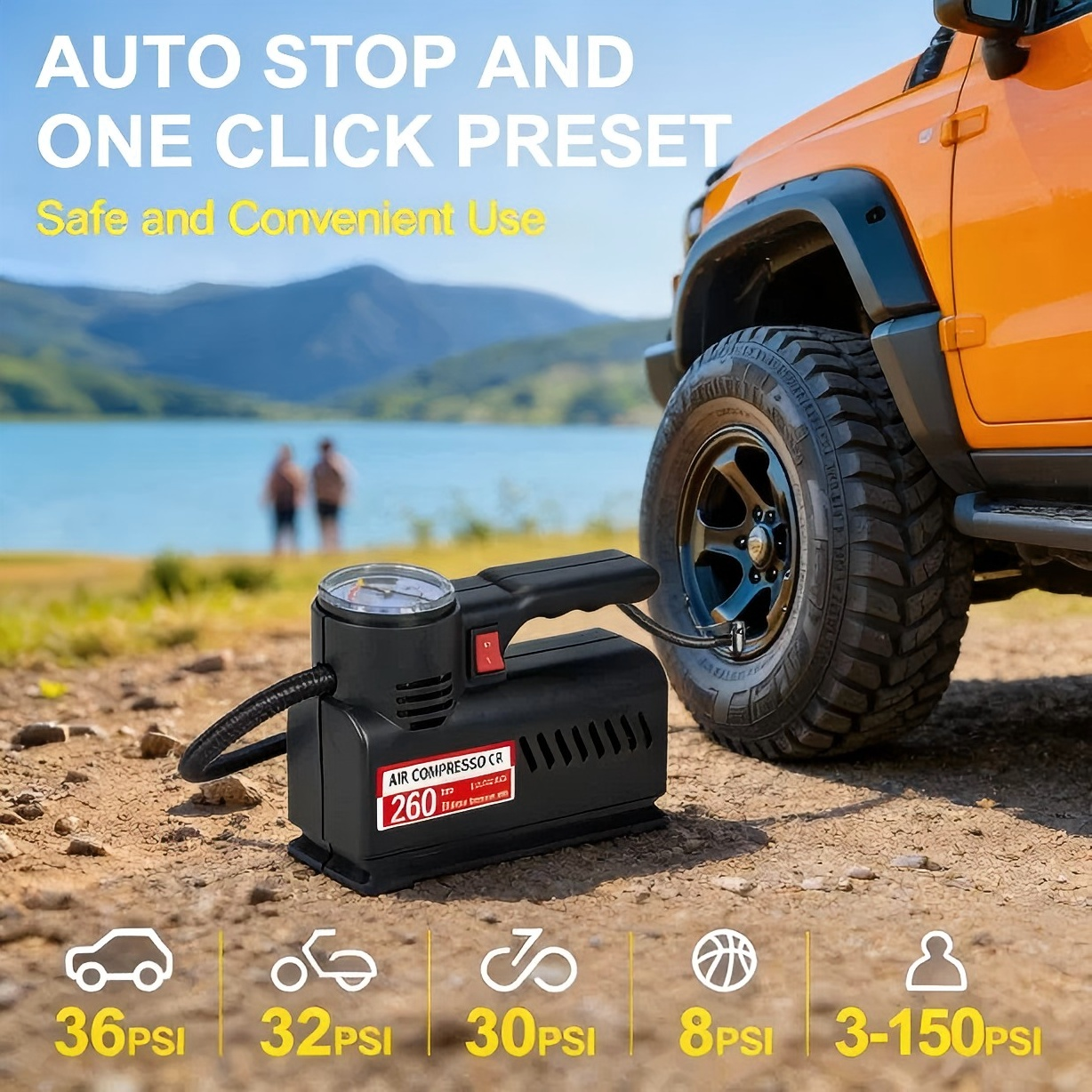 - Inflating speed: appr. 9-10mins (195/60R14, 0-37PSI),