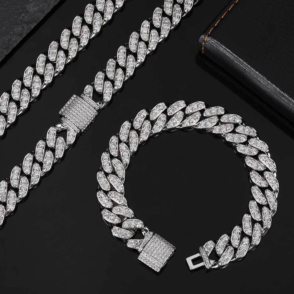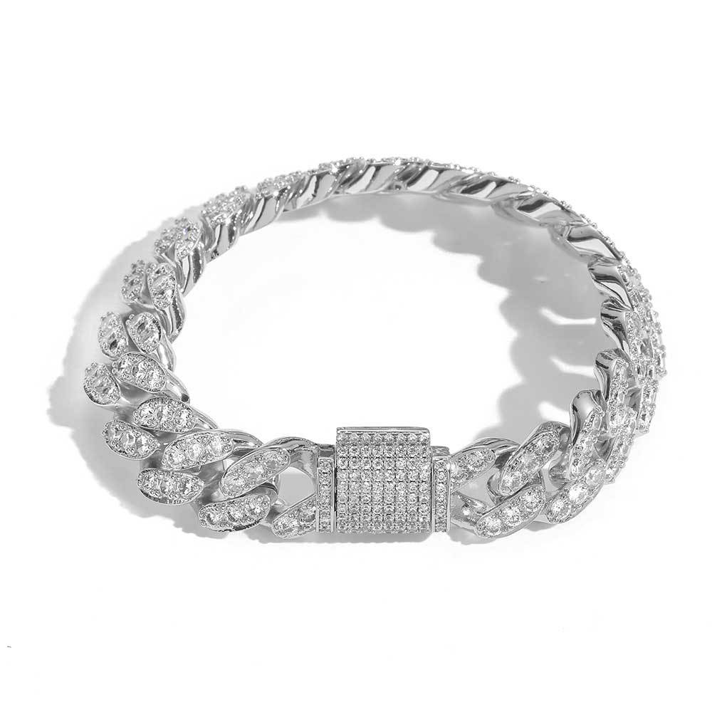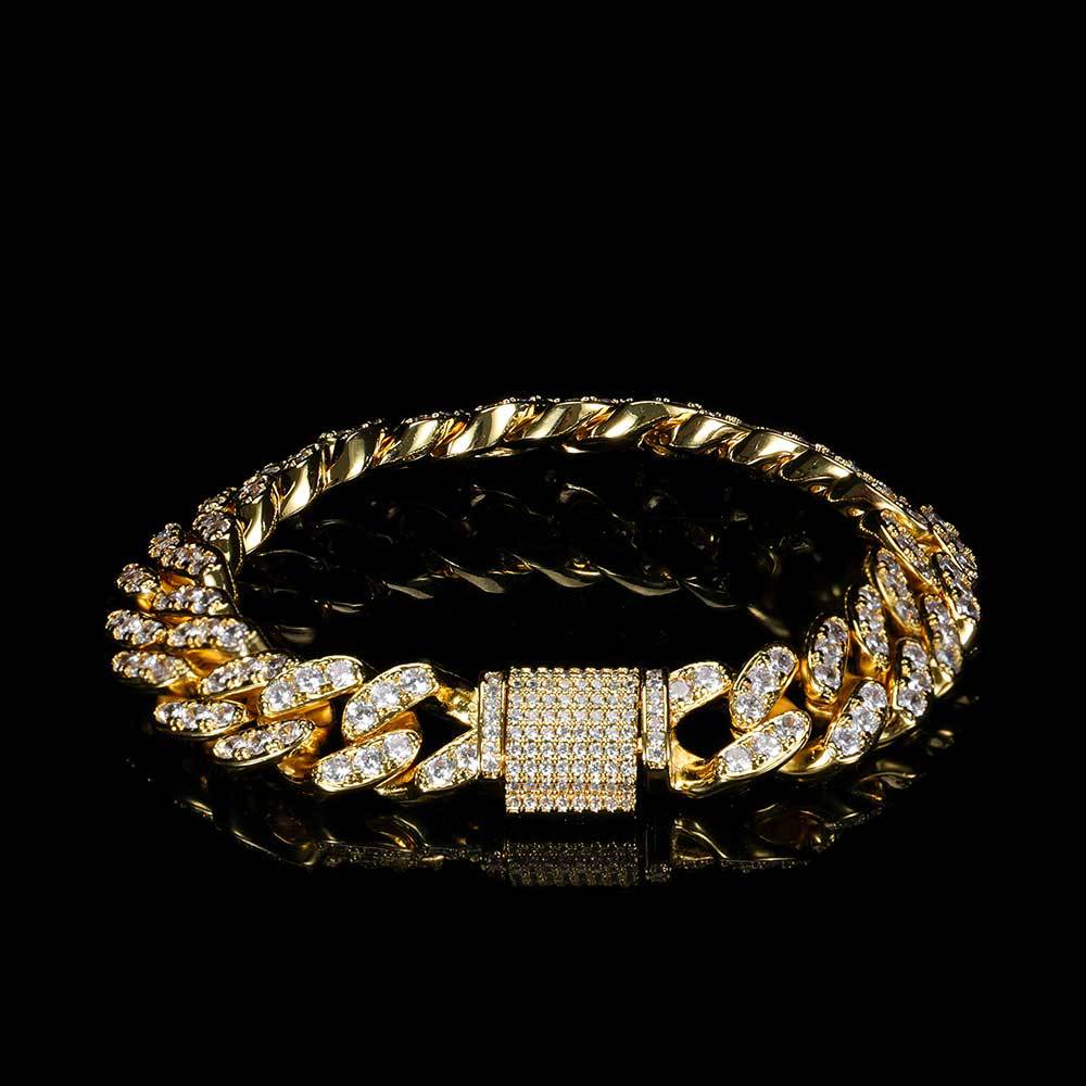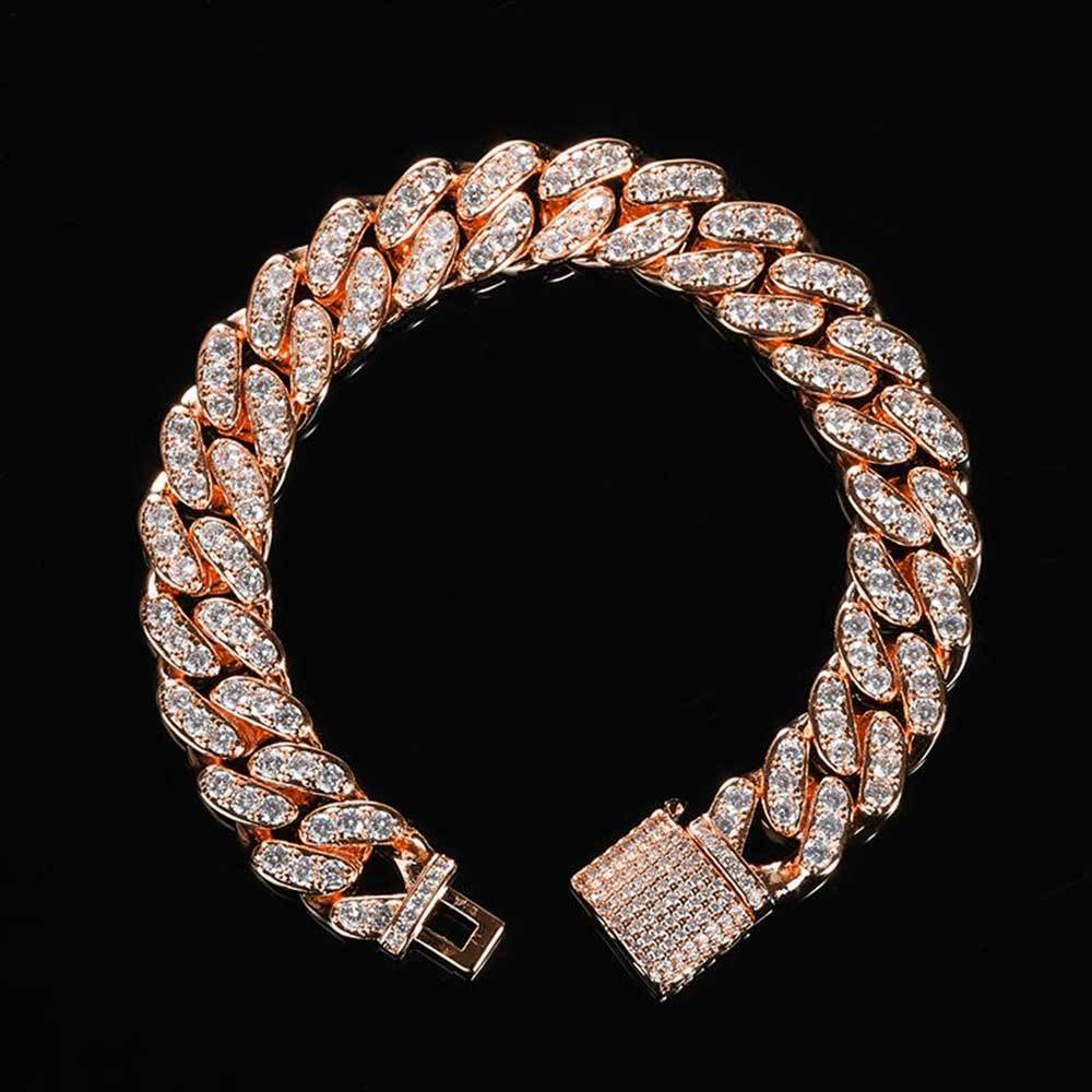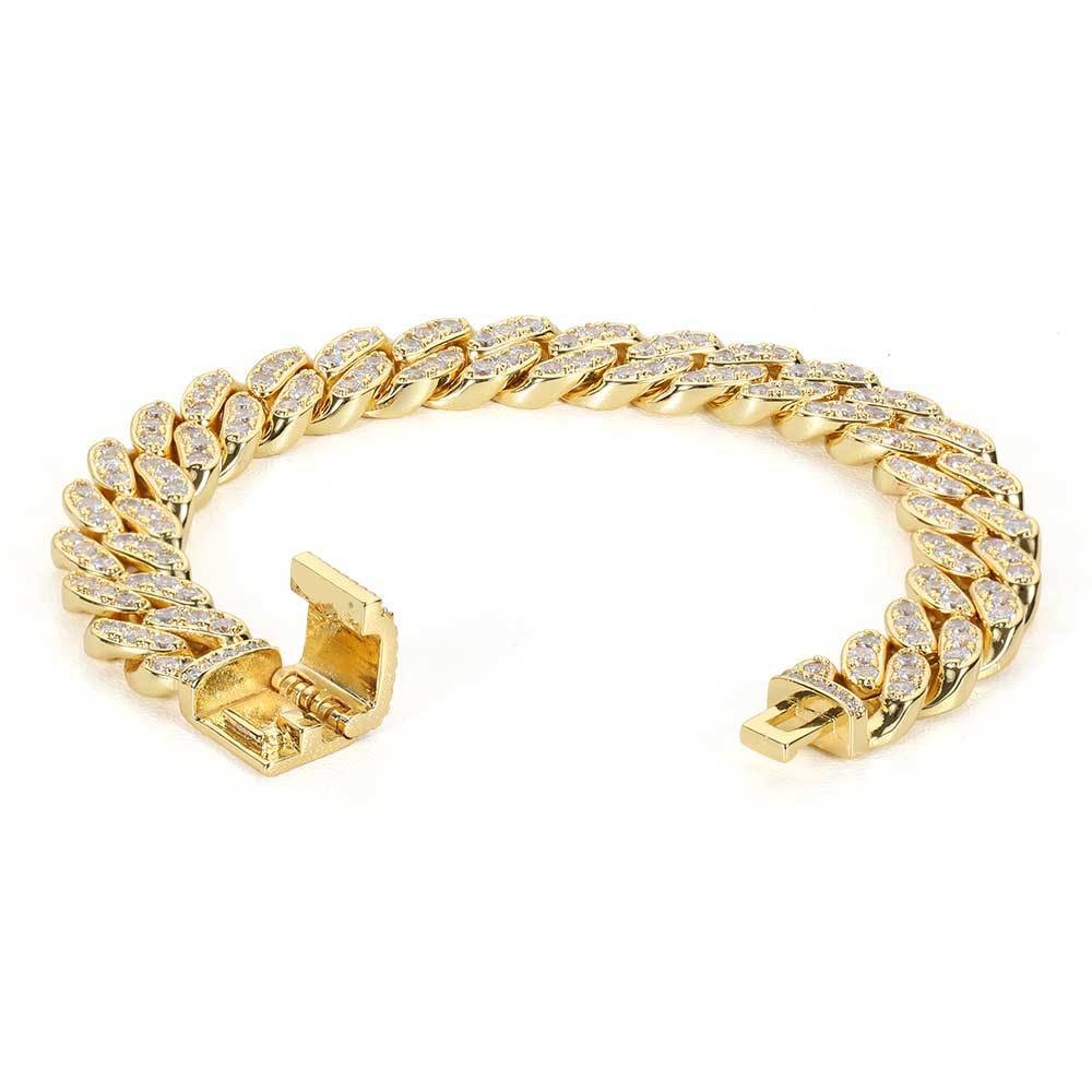 12mm Full Zircon Cuban Chain With Gold-Plated Hip-hop Punk Style Men' Bracelet