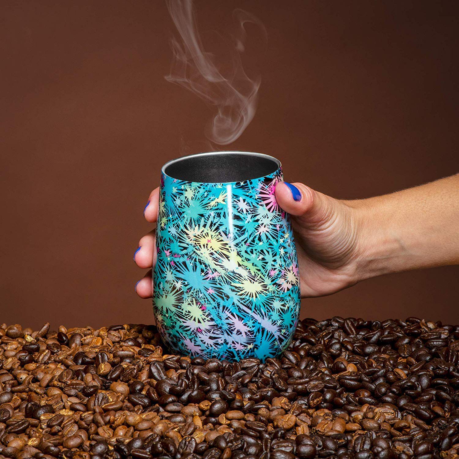 PREMIUM QUALITY TUMBLER- Made from eco-friendly toxin free 304 food grade 18/8 stainless steel for the inner and outer layer of the wine cup. Each tumbler includes a lid Both 100% BPA-free so you know it’s safe. Beautiful designs that are all top quality coatings that won’t peel or chip. Ditch the plastic and start saving the environment with this modern vibrant color tumbler