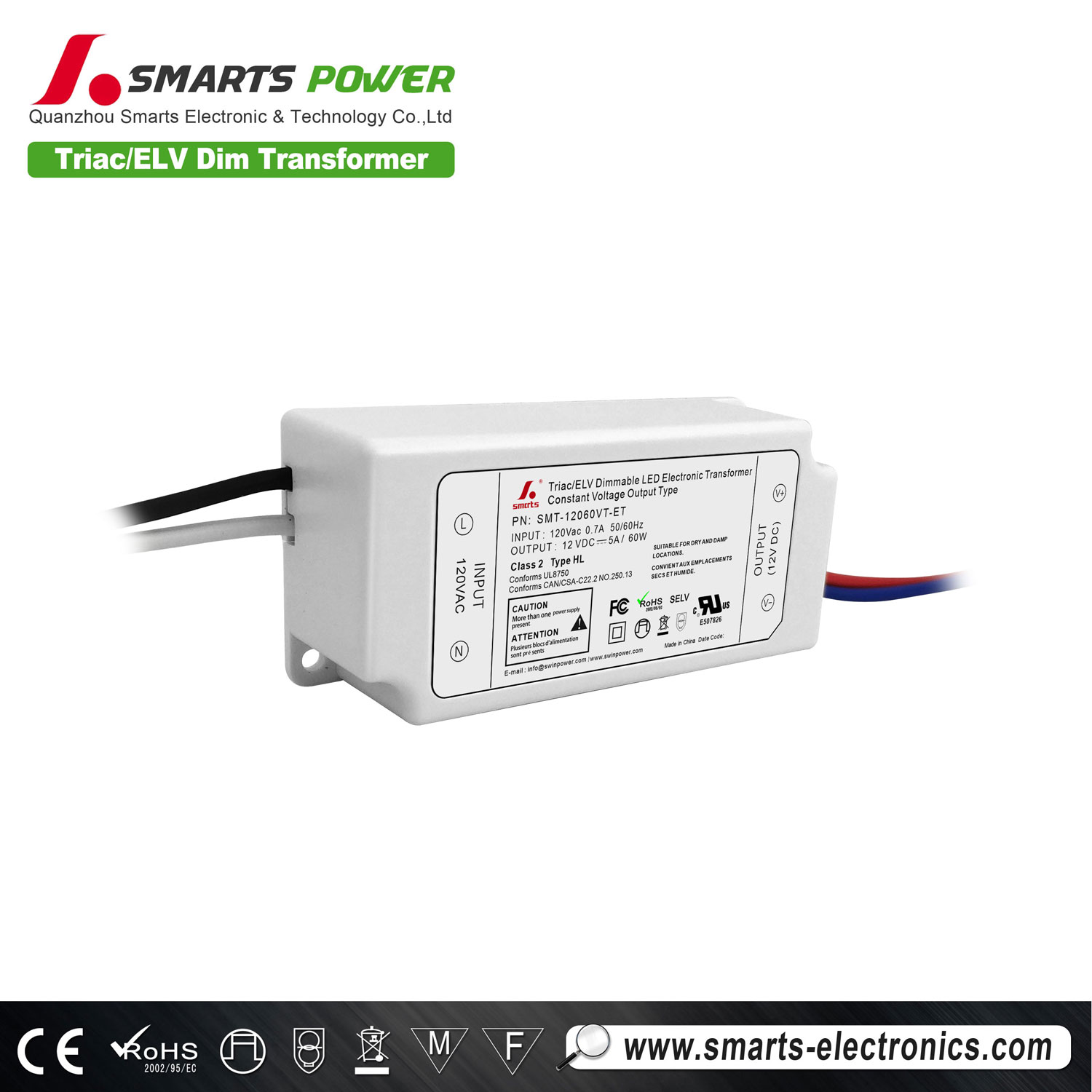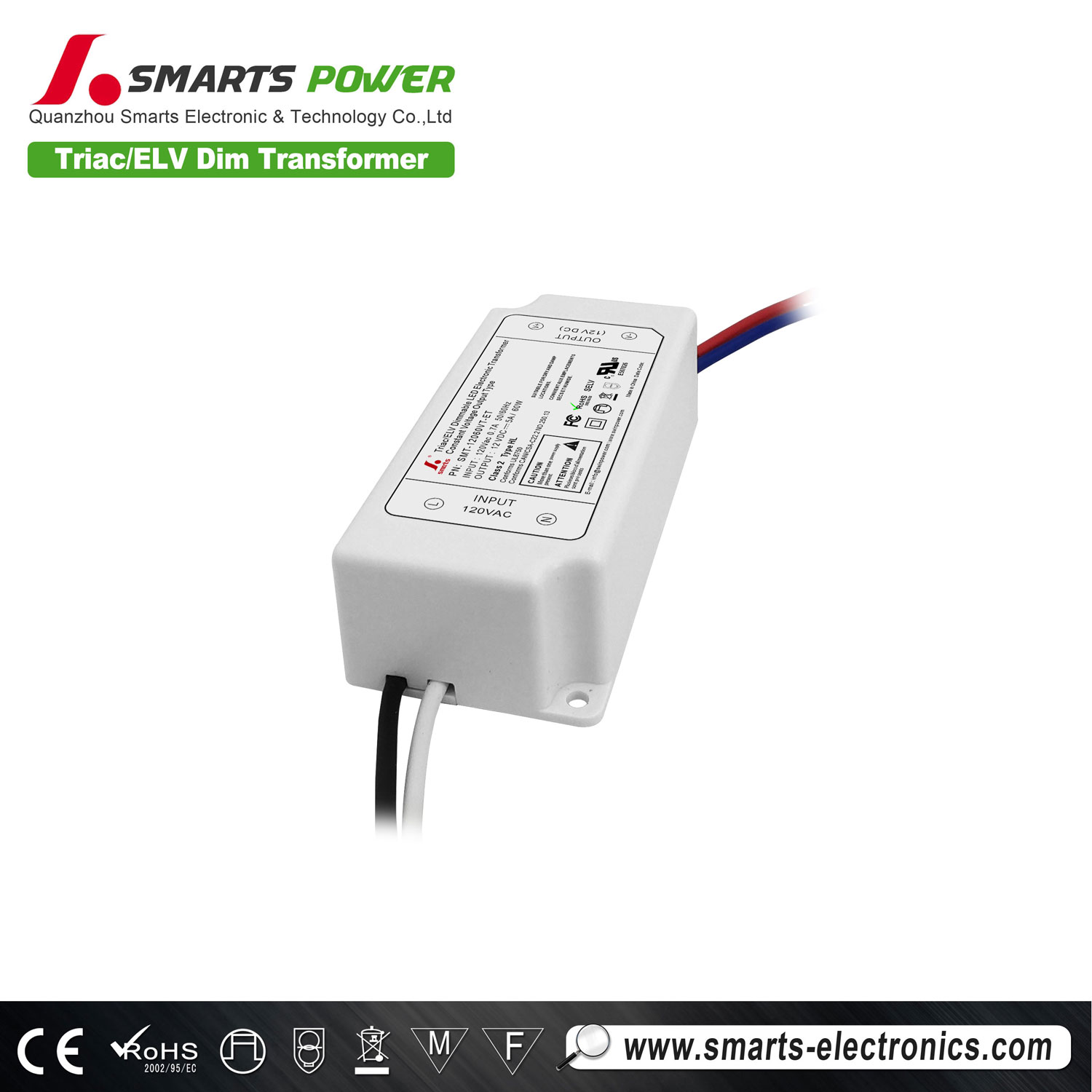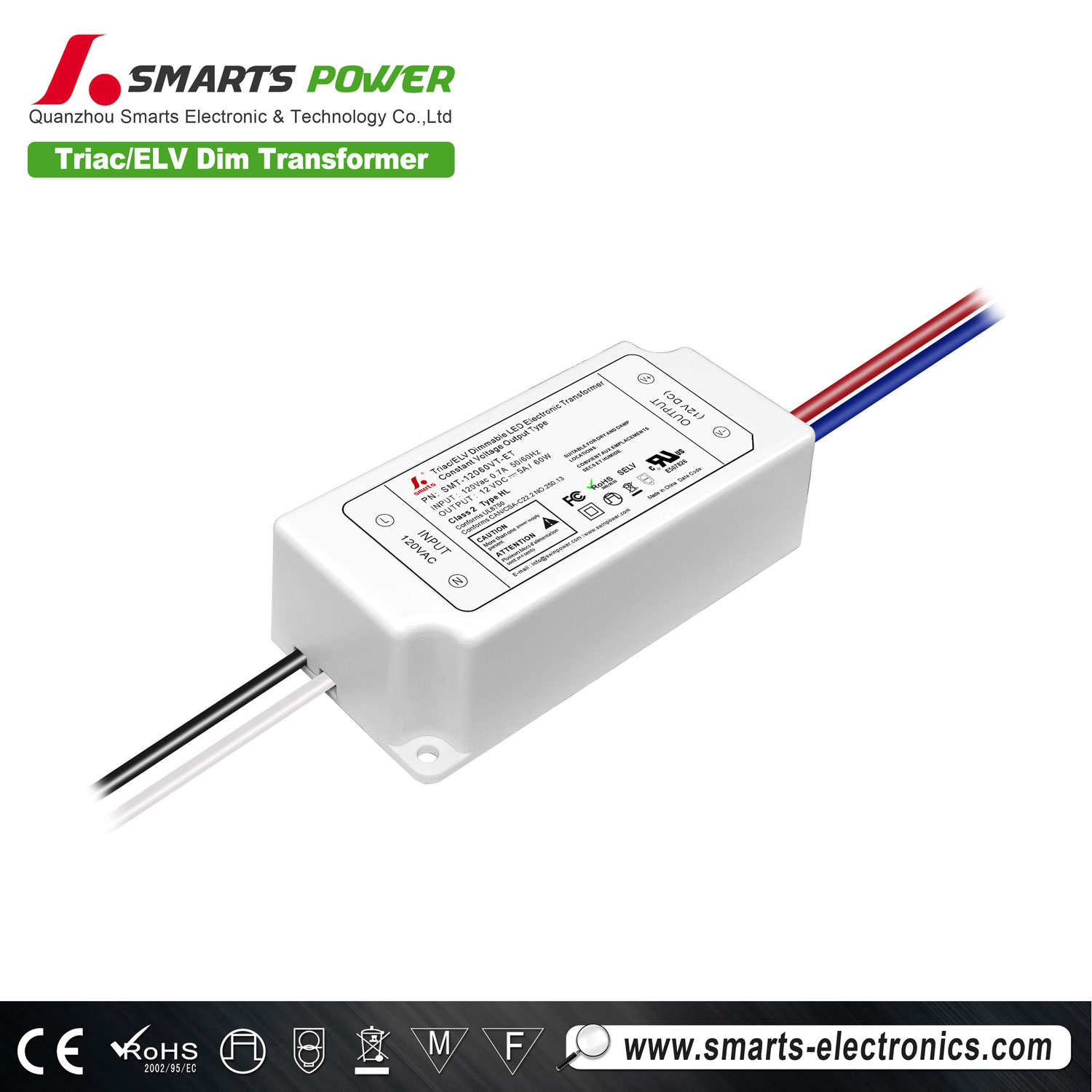 60W triac/ELV dimmable led transformer, compact size, only 84*40*25mm, easy and fast installation, constant voltage operating mode, dimming range between 0-100%, with 3 year warranty
