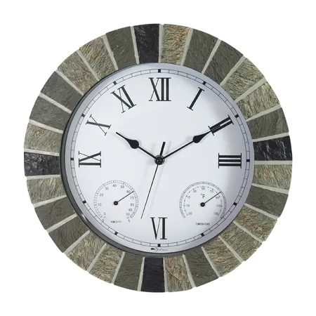 With a nostalgic design, this well-designed analog clock adds a unique touch to your tasteful room decor. The well-engineered analog clock precisely indicates the time. The versatile clock also features two subdials that indicate temperature and humidity.