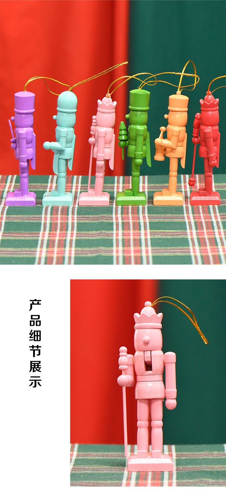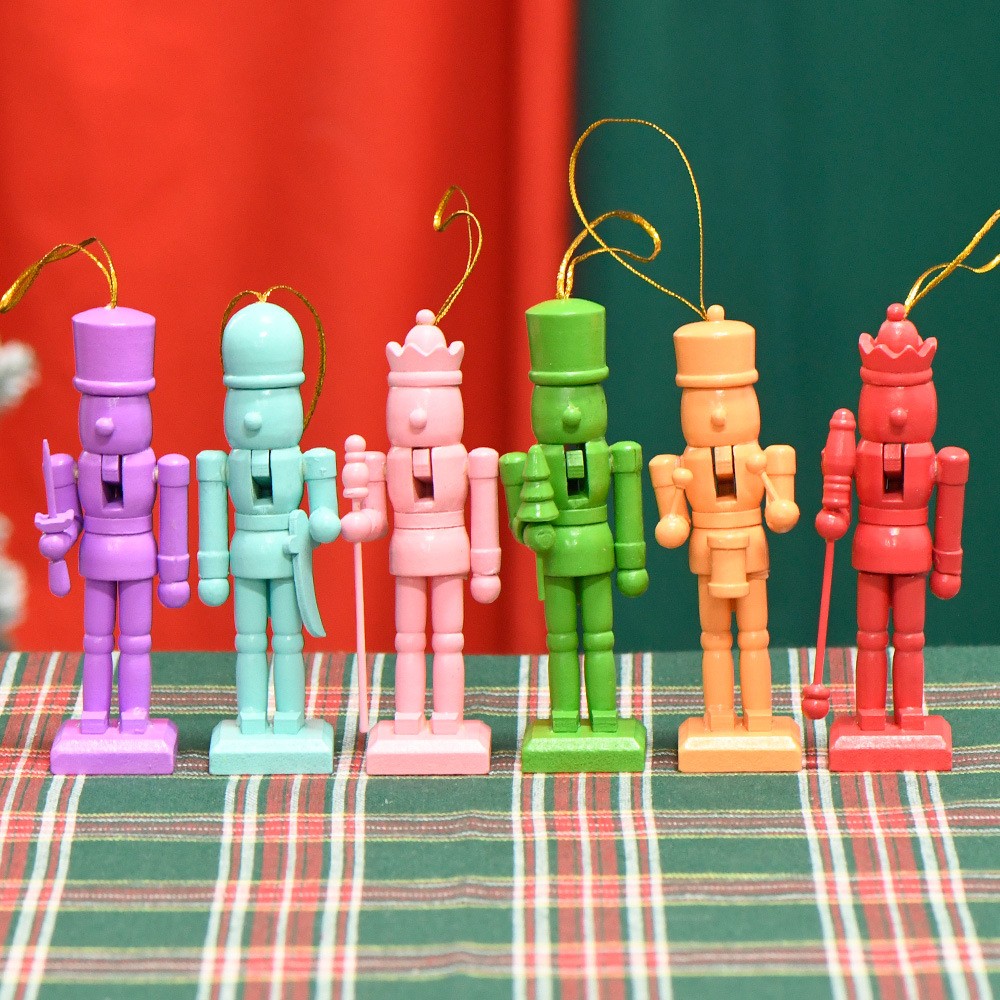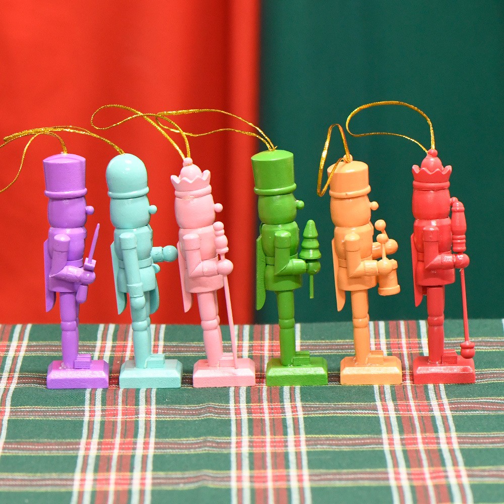 13CM套6彩虹色粉红胡桃夹子木偶人挂件圣诞树摆件