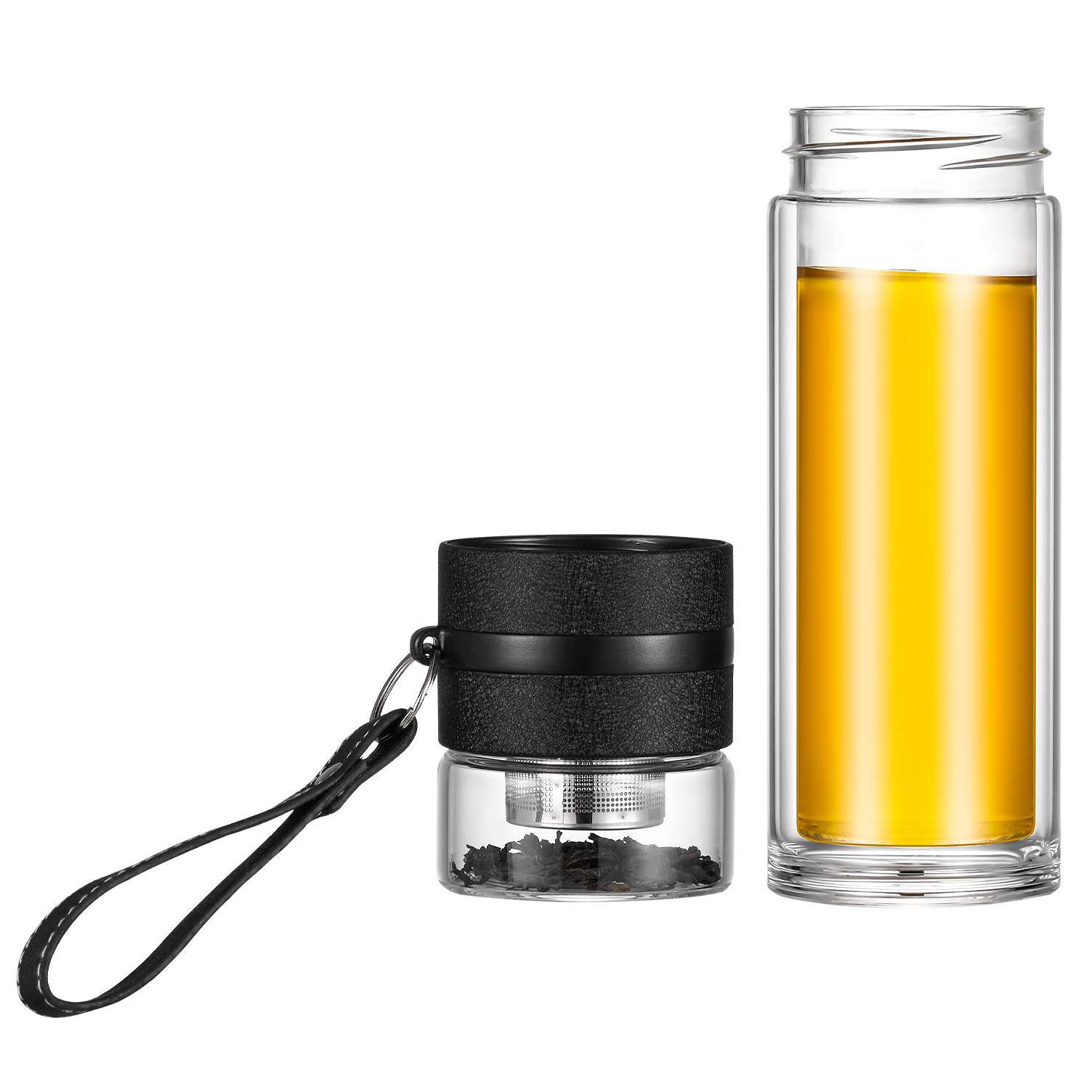 13oz Double Wall Glass Water Bottle Tea and Water Separation