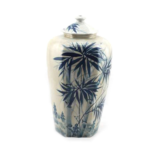 This is a 14” antique crackle jar that is finely crafted with refined details. It is accented with bamboo prints for a decorative touch. This stylish and elegant jar makes an ideal addition to brighten up your home decoration.