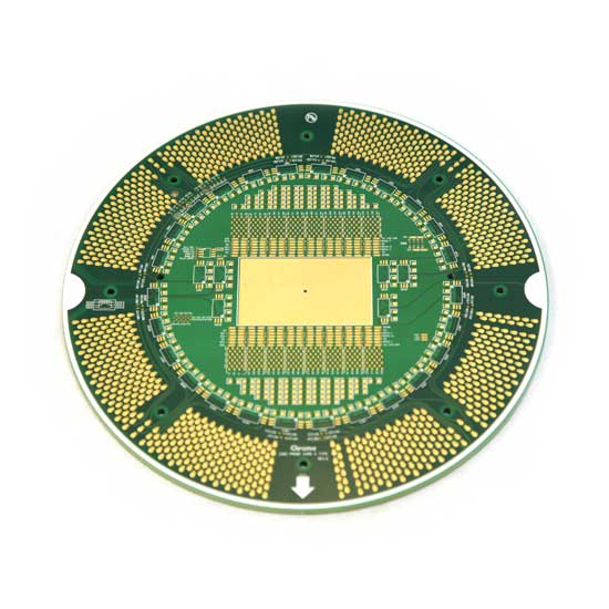 This round PCB features a 14-layer design for meeting your needs. It is made of flame retardant FR4 material. The surface is finished with immersion gold for durability.