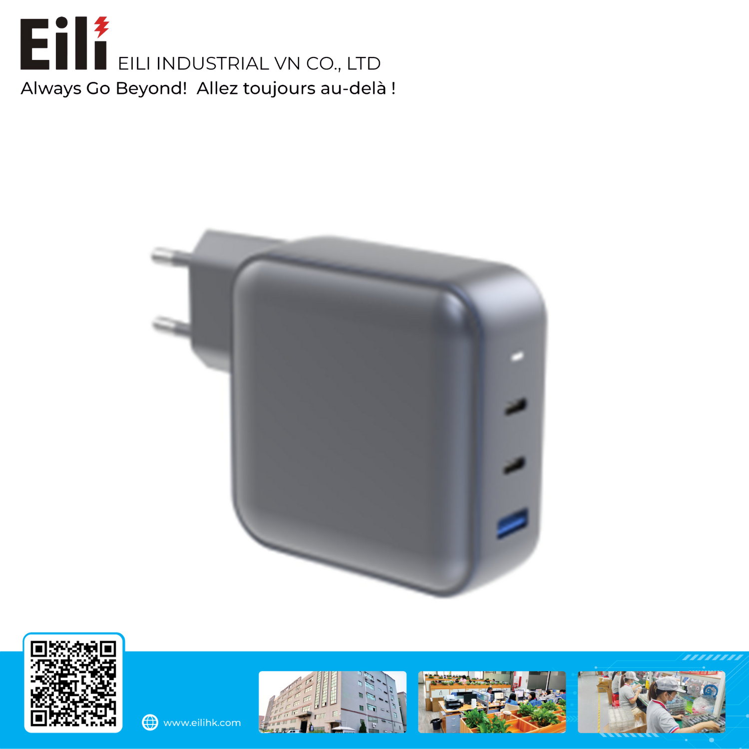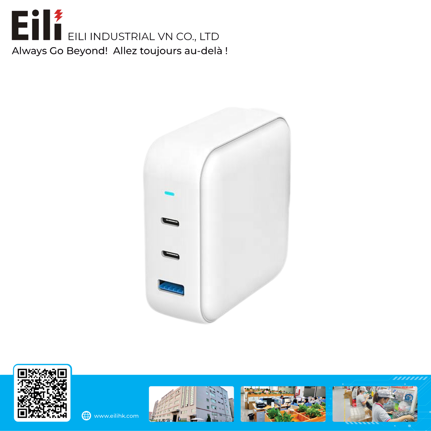 The 140W USB-C Charger with dual USB-C ports and one USB-A port delivers ultra-fast and efficient charging for high-performance laptops, tablets, and smartphones. Supporting the latest Power Delivery (PD 3.1) standard and Quick Charge (QC), it ensures reliable power distribution for single or multiple devices. With a compact yet powerful design, this charger is perfect for professional, office, and travel use.