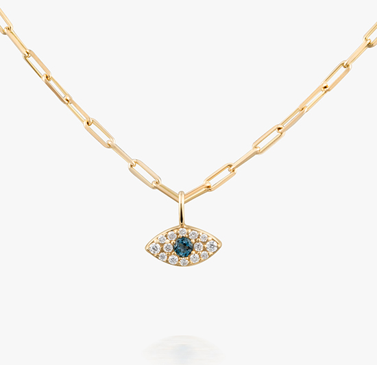 14K Diamond & Blue Topaz Evil Eye Necklace