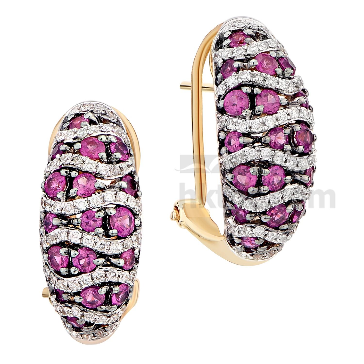 • 14 Karat Yellow Gold dome huggie earrings with pink Rubies & white Diamonds (matching ring available: R 51812)