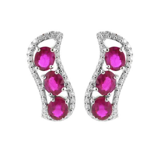 This pair of earrings entices you with the brilliant red glints of rubies. The prong-set gems are surrounded by decorative CZ stones for an air of luxuriousness. This gorgeous pair can fully adorn your sophisticated look.