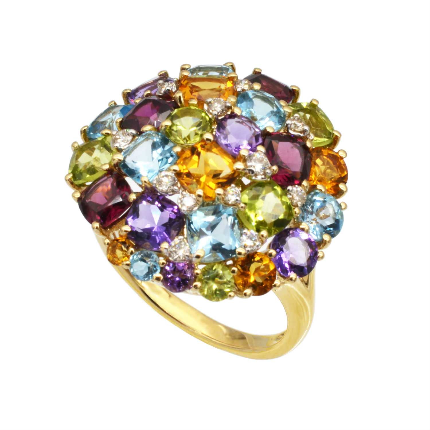 14K Yellow Gold Multi-Color Gemstones Ring