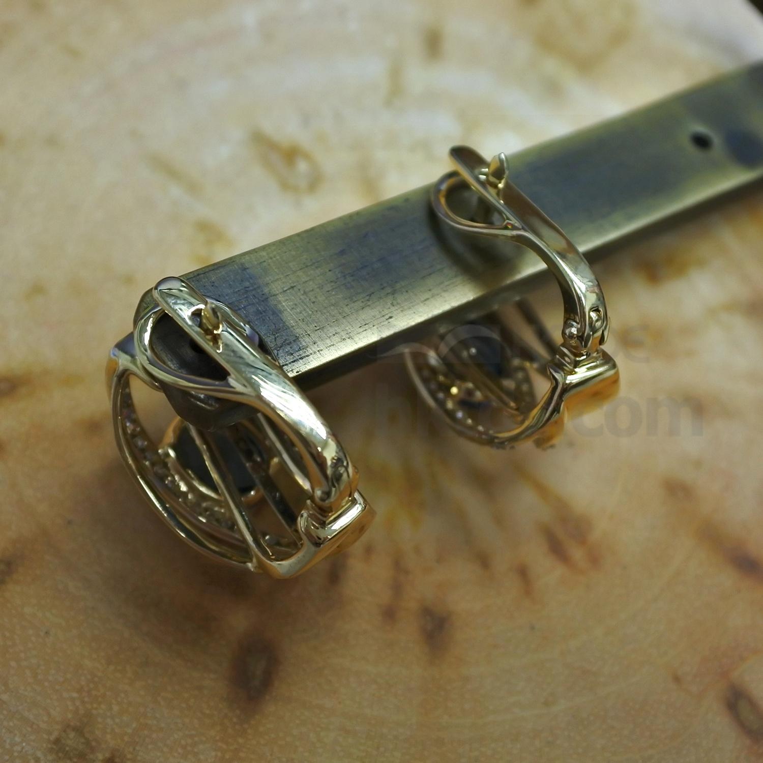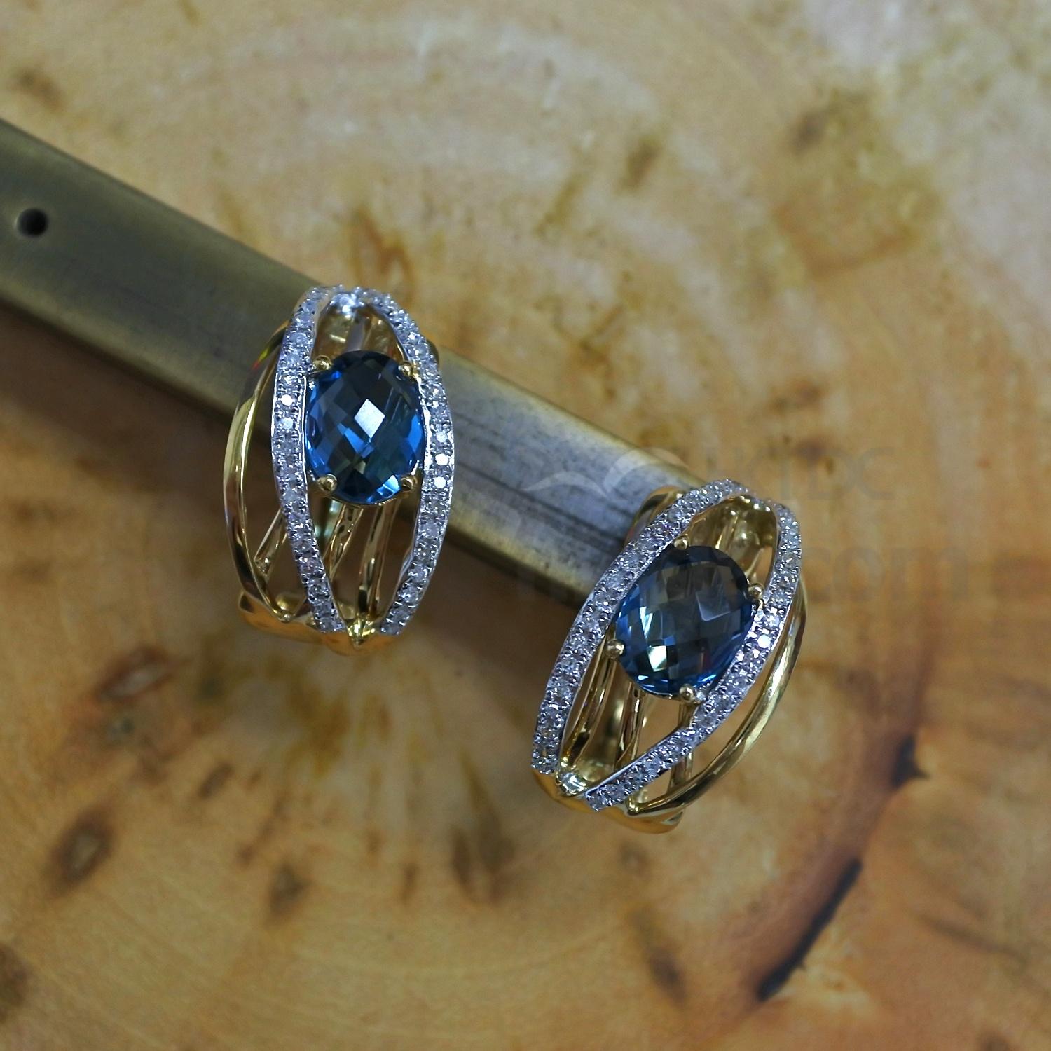 • Yellow gold earrings set with blue Sapphire 6x8mm, white diamonds TW 0.263CT