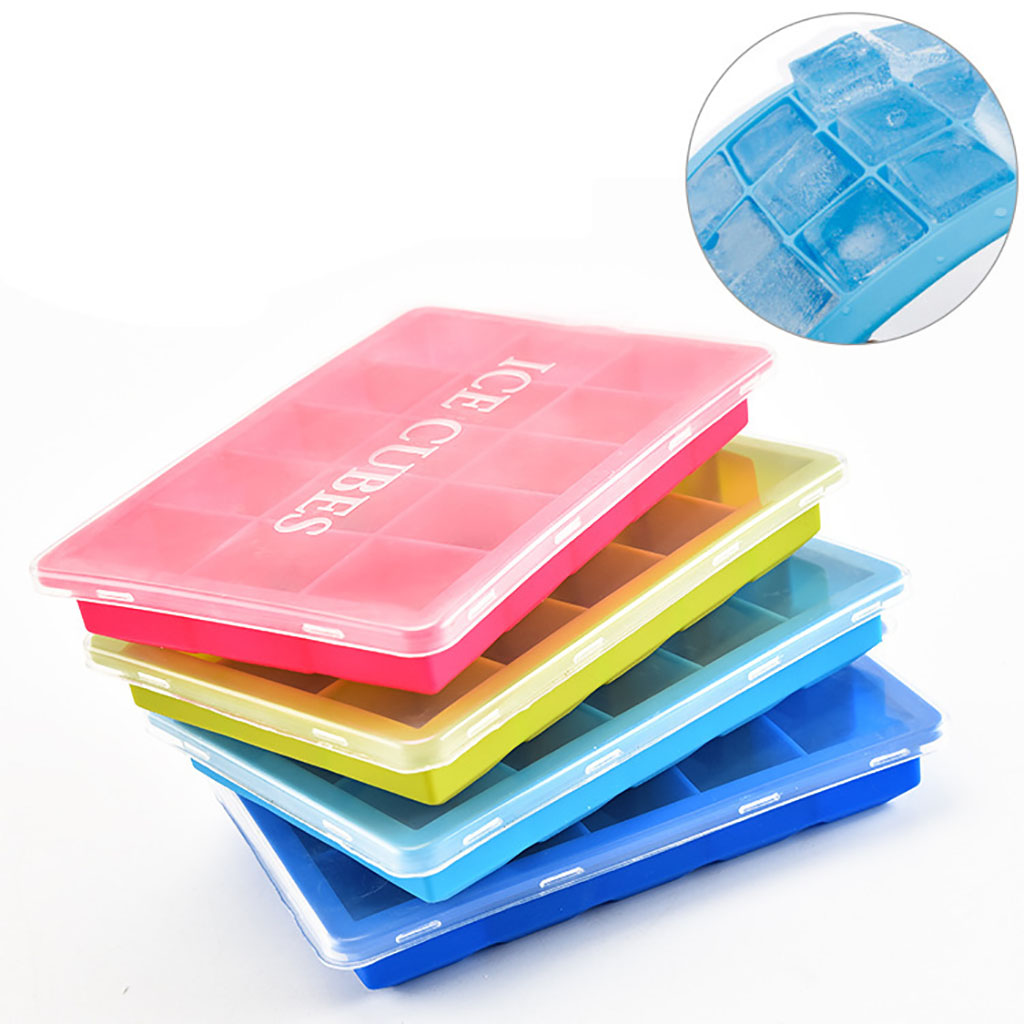 15-Cavity Silicone Ice Cube Tray with Lid Cover includes the following features :