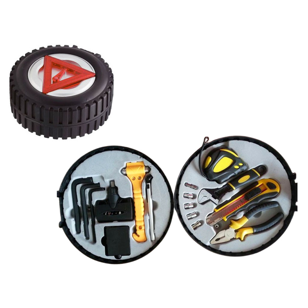 15-Pieces Multi-functional Tool Kits w/ Tire-shaped LED Alarm Tool Case