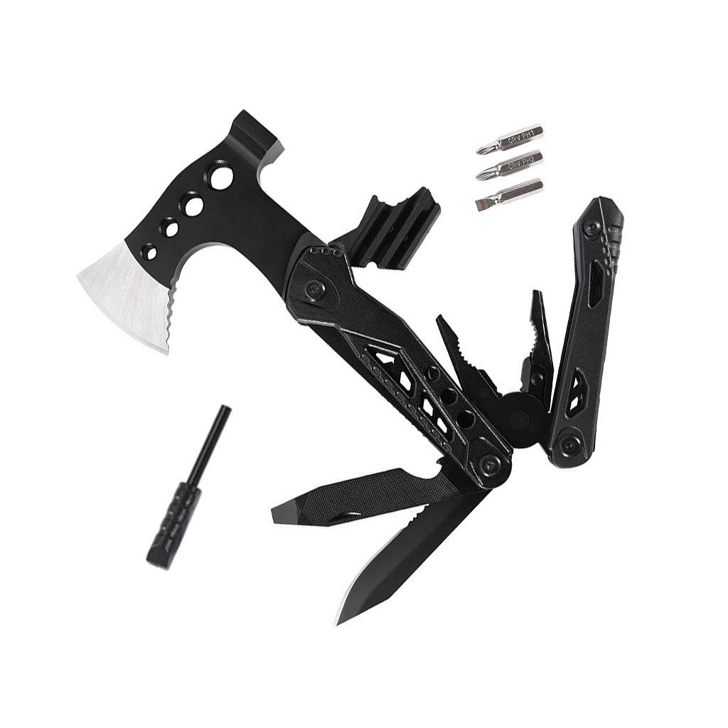15-in-1 Portable Multi-function Survival Hatchet with 3 Screw Bits includes the following features :