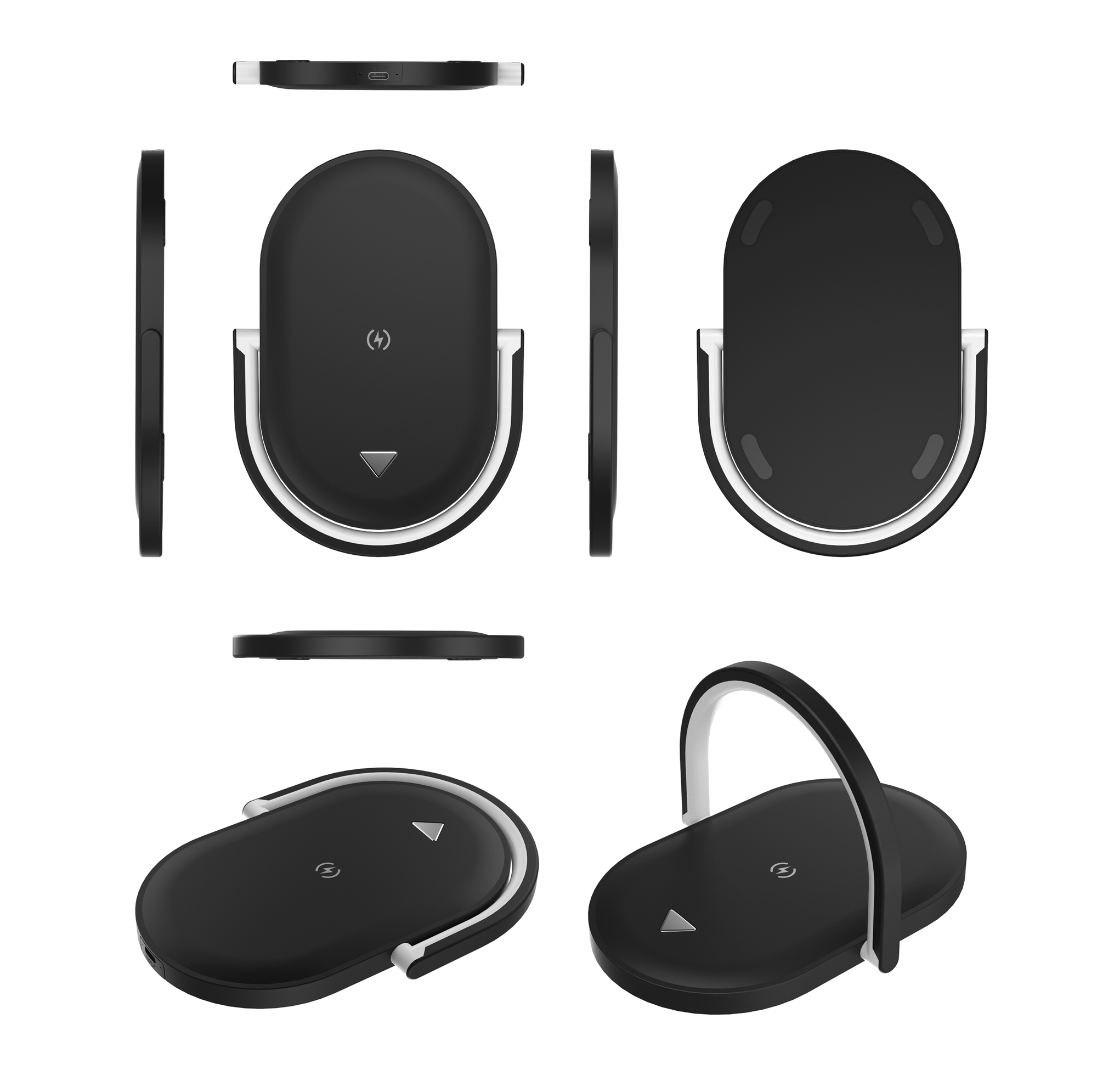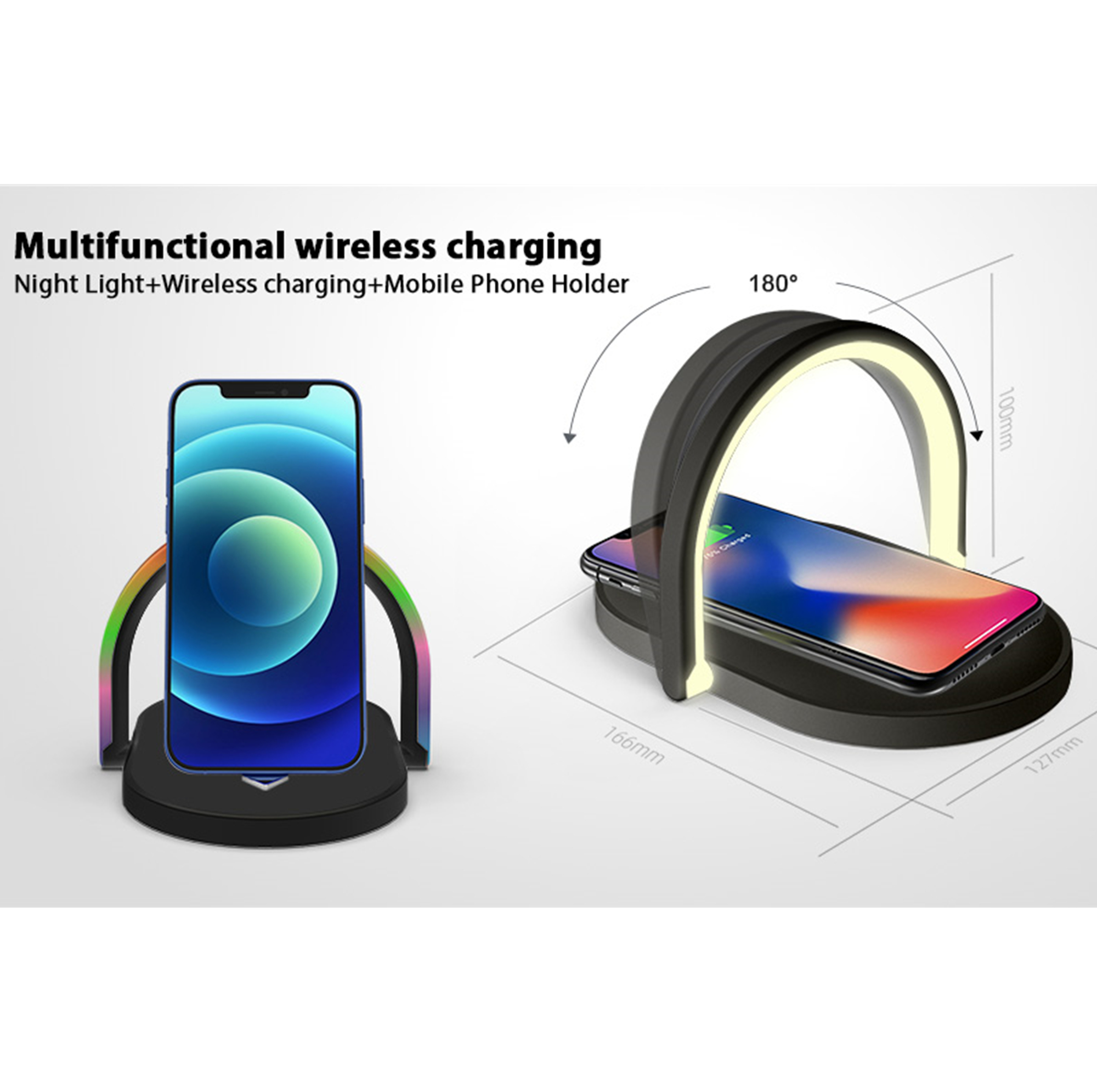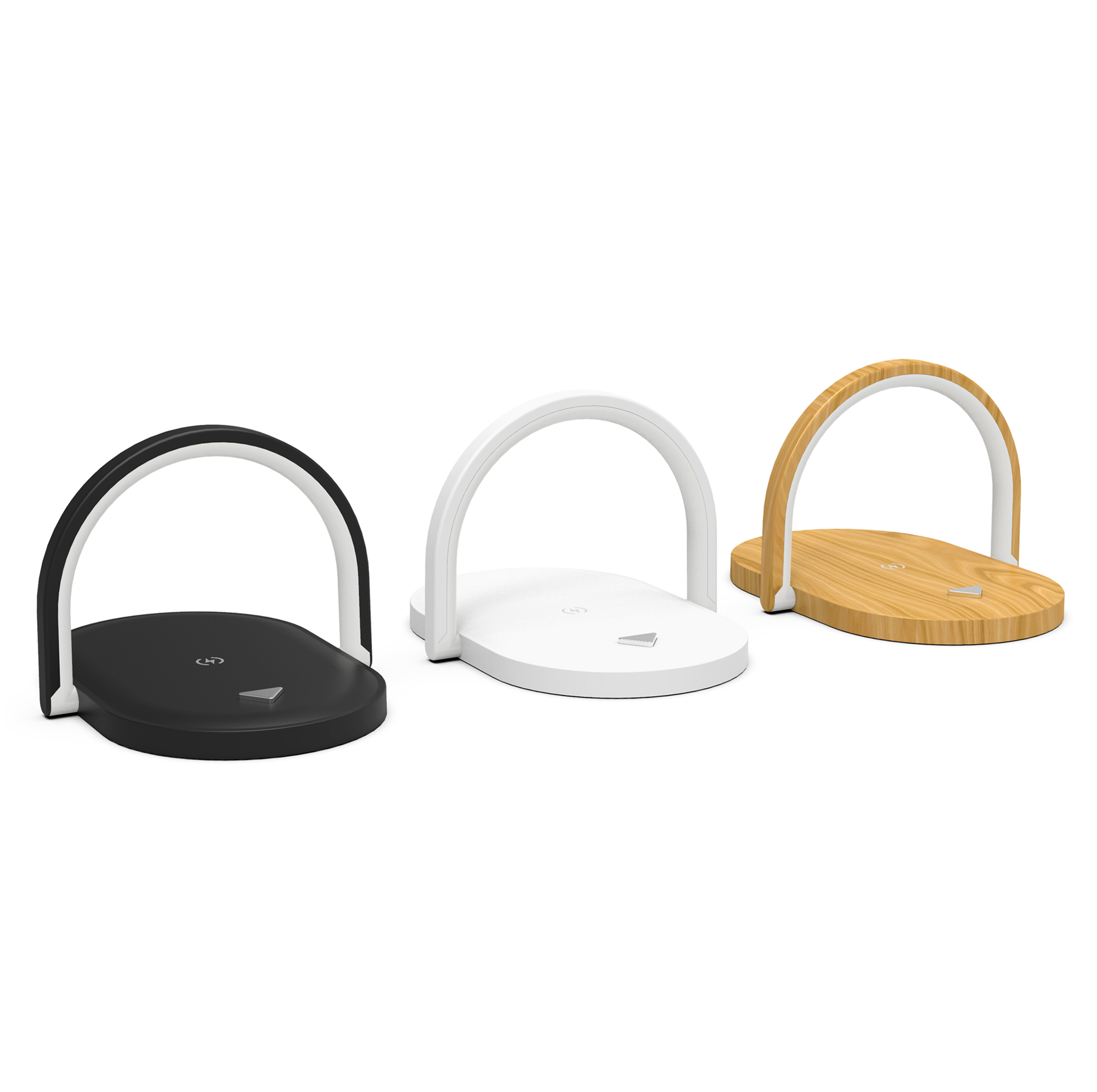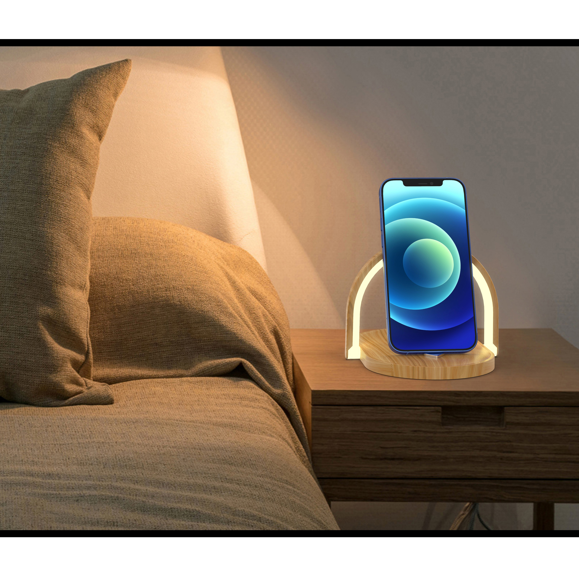 15W Wireless Charger with Phone Stand Holder and Night Lamp Black White Wooden
