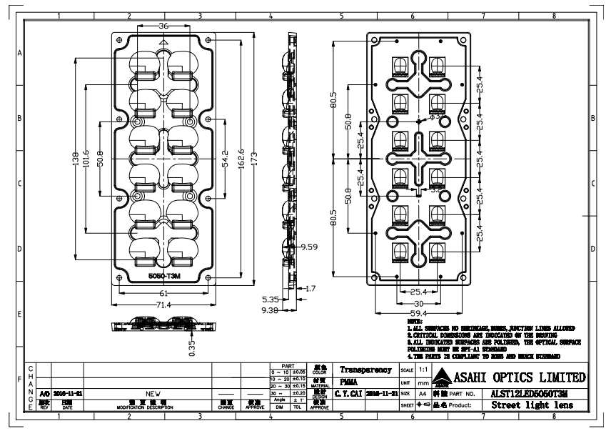 Asahi Optics has developed the 2x6 lens modules for high bay light, which designed for street light is a water-proof solution.