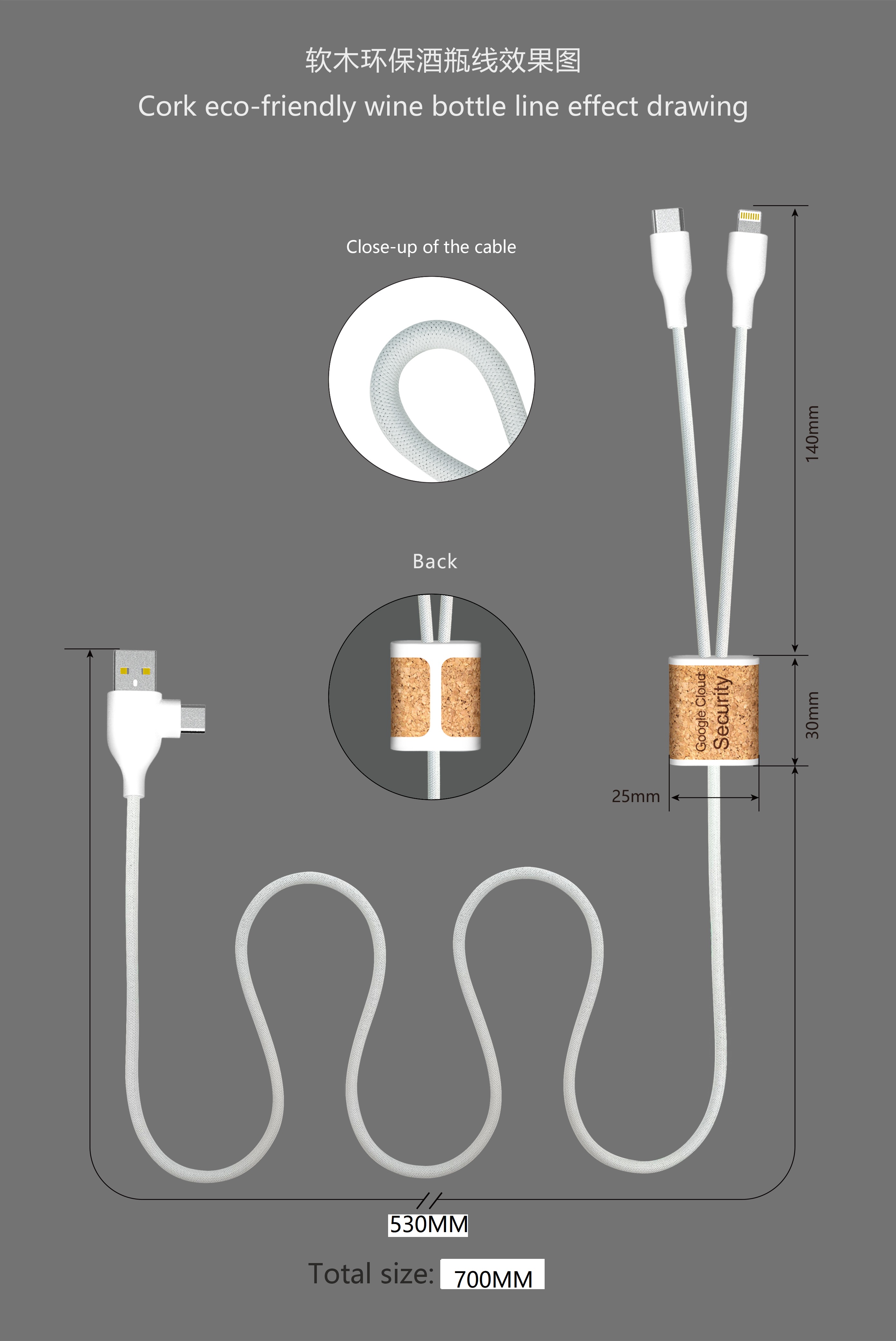 17cm 4in1 Cord wood Key Chain Charging Cable