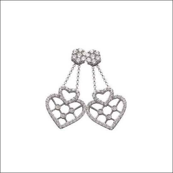 • Cluster set diamond earring chained with the open heart diamond drop by a cable chain.