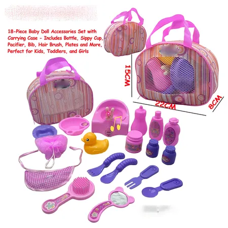 18 pcs doll accessories in carry bag, you can change the different style accessories , and bag style