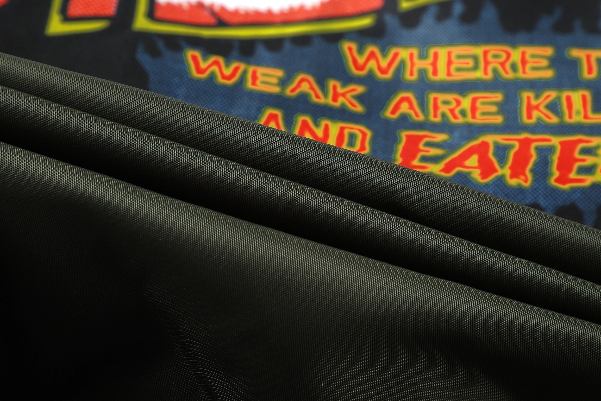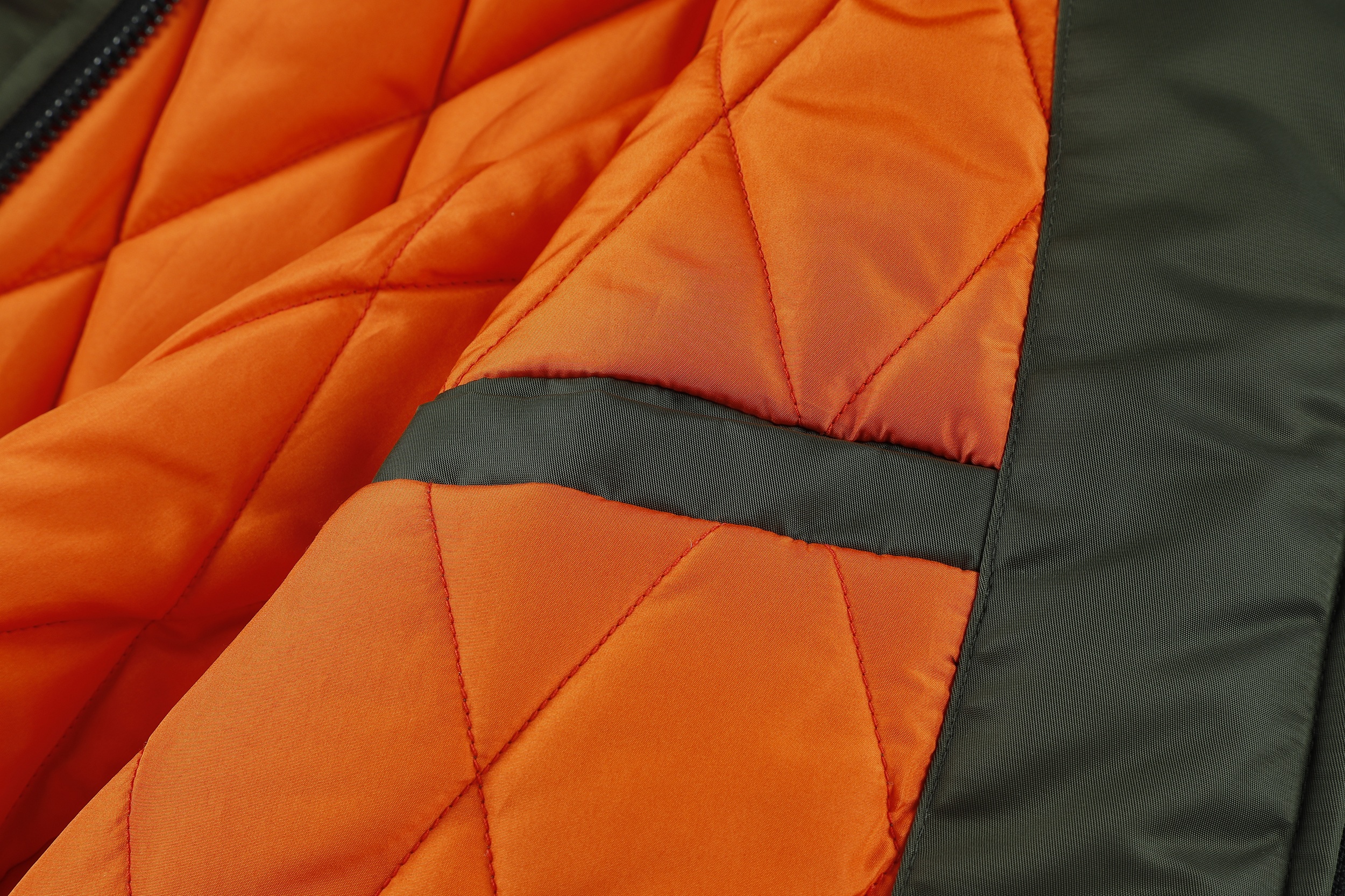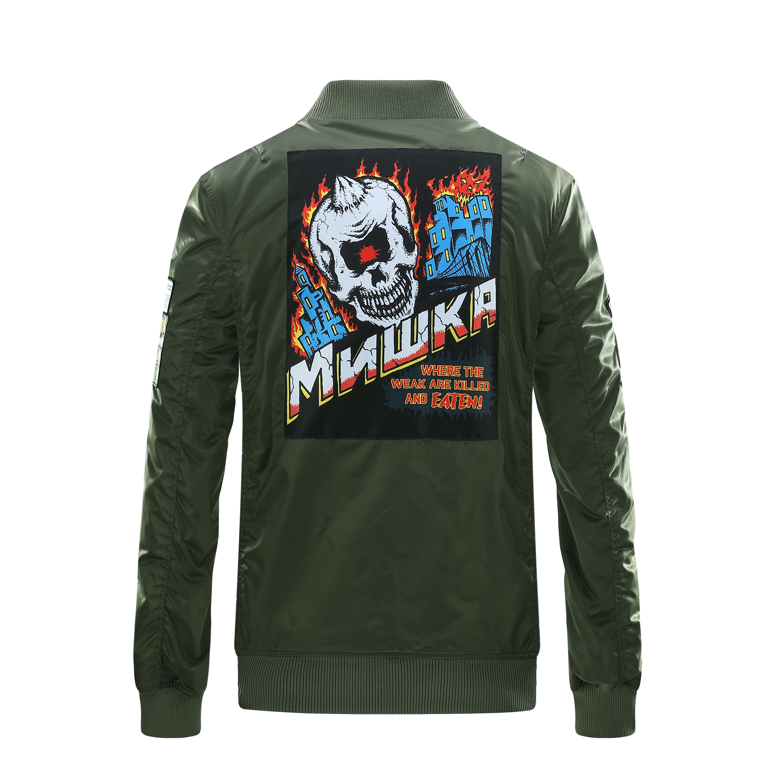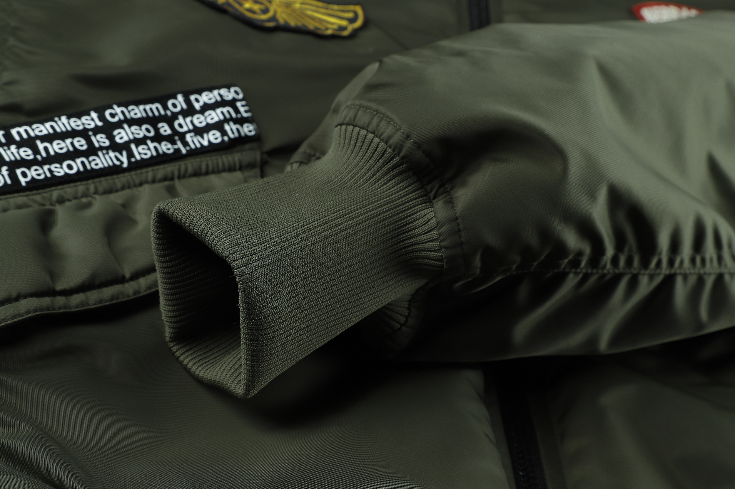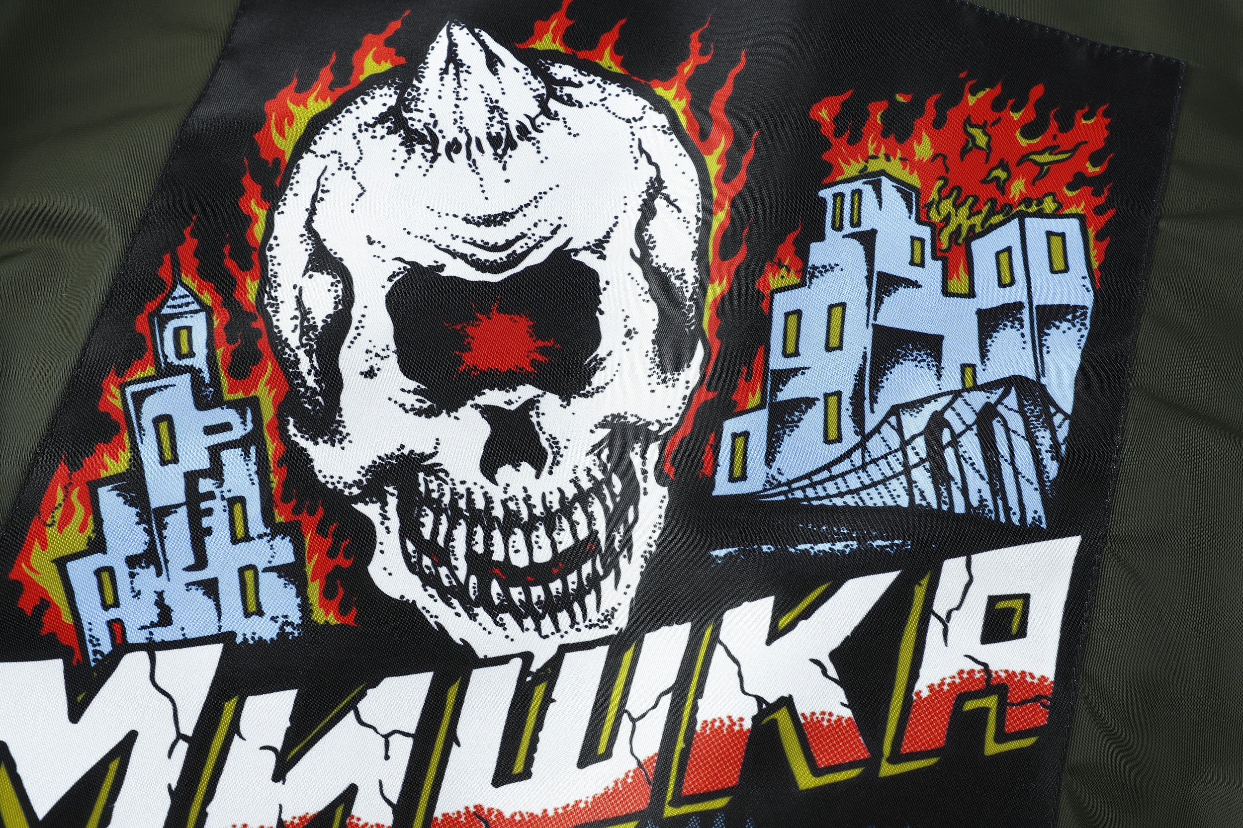 The image showcases a distinctive winter jacket with a bold and graphic design. The jacket is predominantly white and features a camouflage pattern with shades of gray and black, along with repeated text and logo prints that add a contemporary urban feel. It includes a fur-lined hood, which not only provides warmth but also contributes to the jacket's stylish appearance. The jacket is equipped with a front zipper and additional buttons, ensuring a secure fit. The cuffs and waistband appear to be adjustable, allowing for a customized fit. The overall design of the jacket suggests it is suitable for cold weather conditions, offering both warmth and a statement-making style.