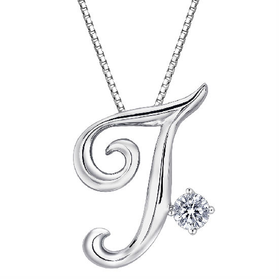 18K/750 White Gold Leo Diamond Initial T Pendant