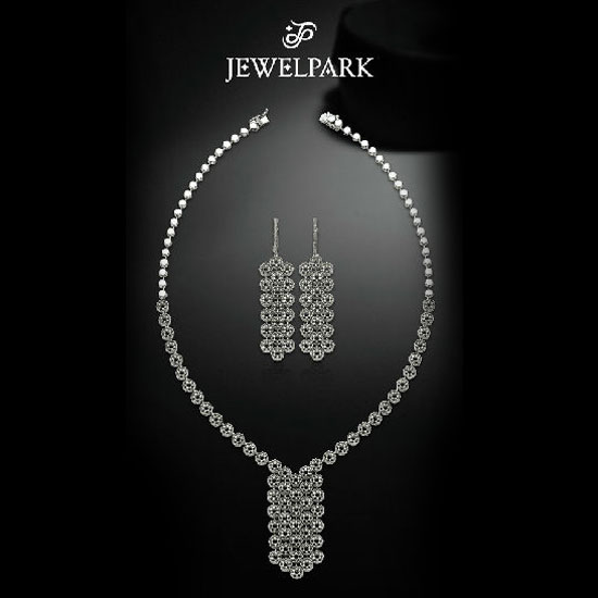 This diamond jewelry set of a necklace and a pair of dangle earrings is absolutely gorgeous. Finely crafted with tennis mounting, the jewelry pieces with the packed diamonds shine like stars in the night sky. This is a wonderful jewelry set for all the decent ladies.
