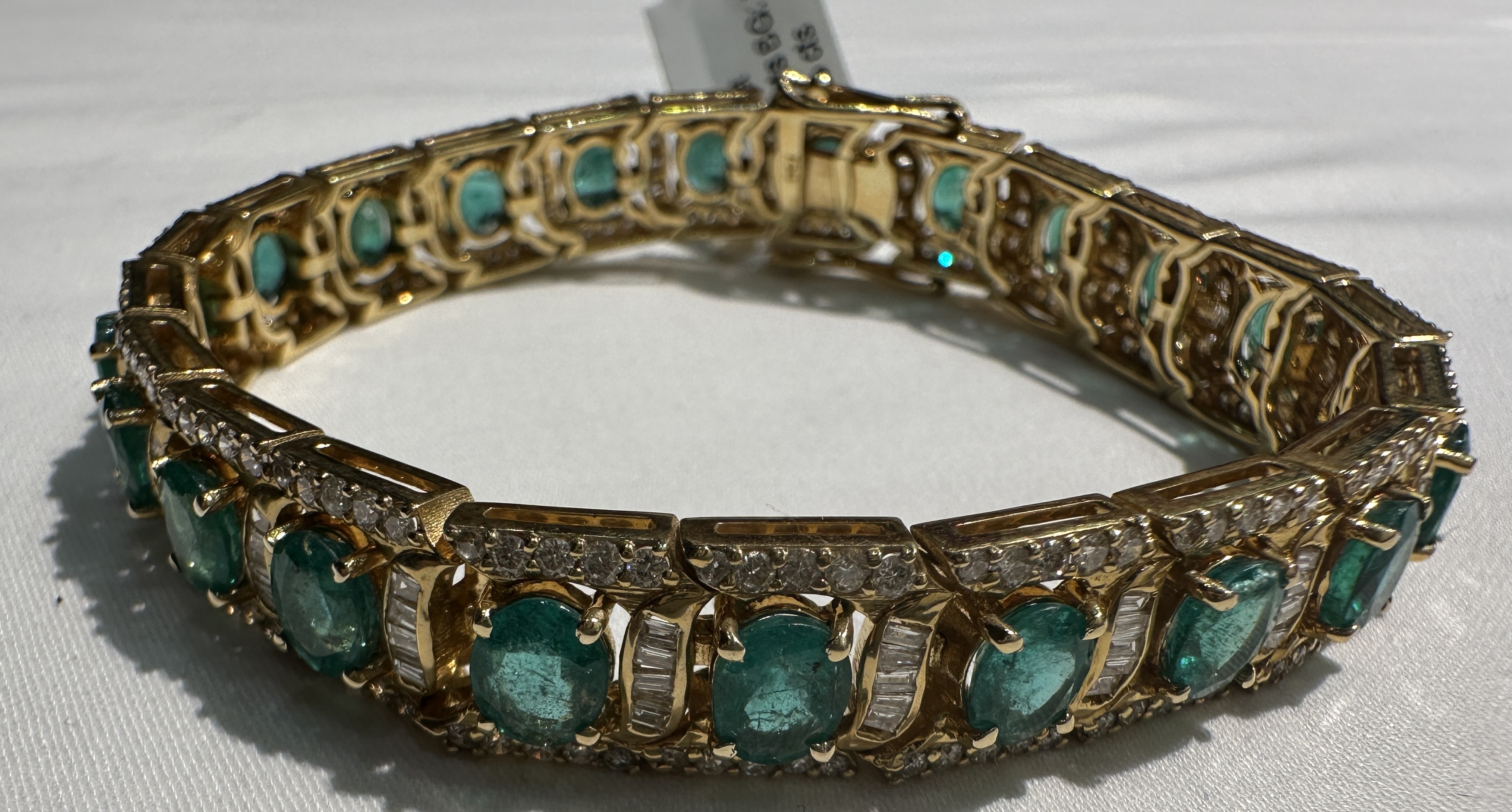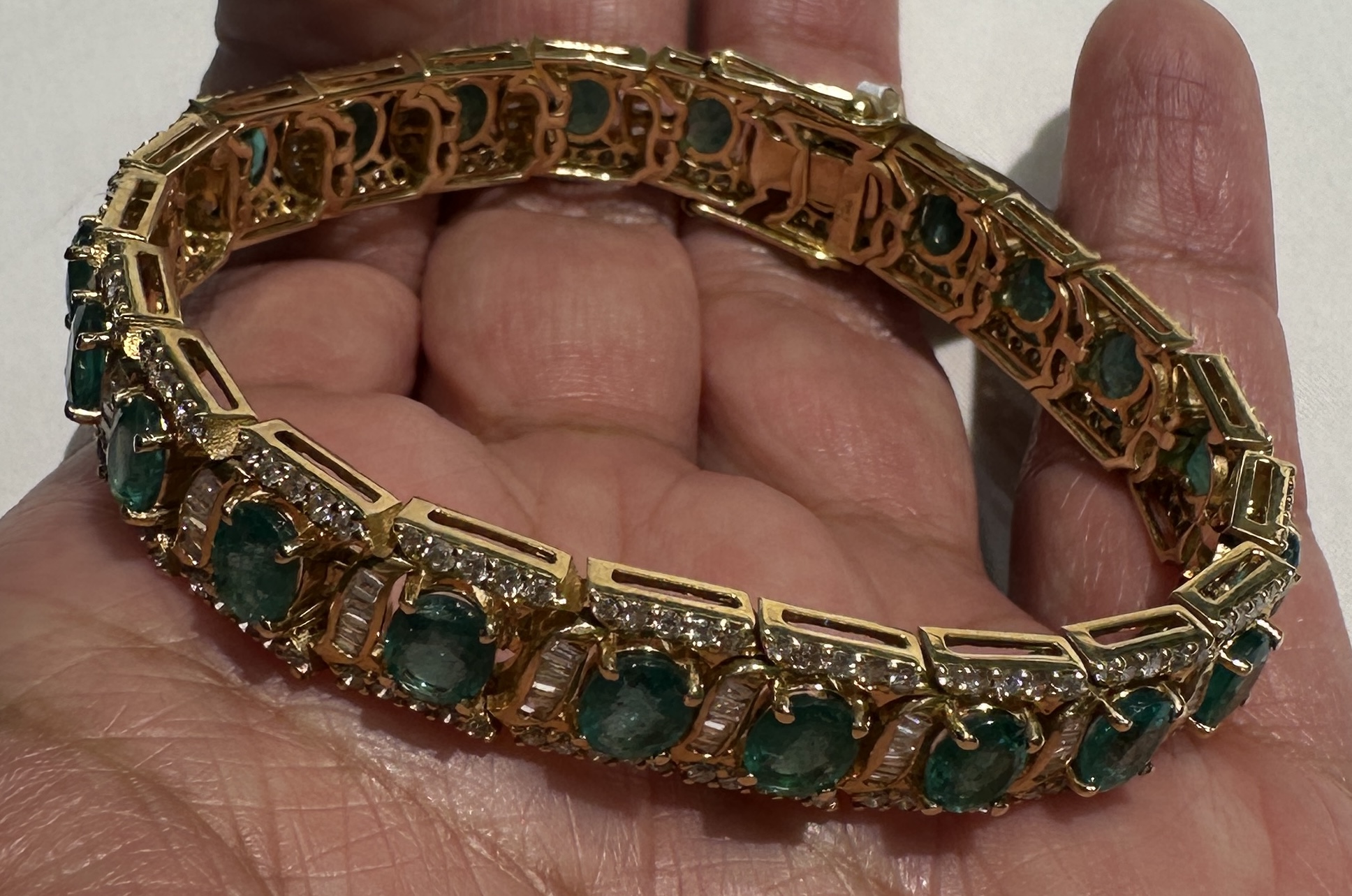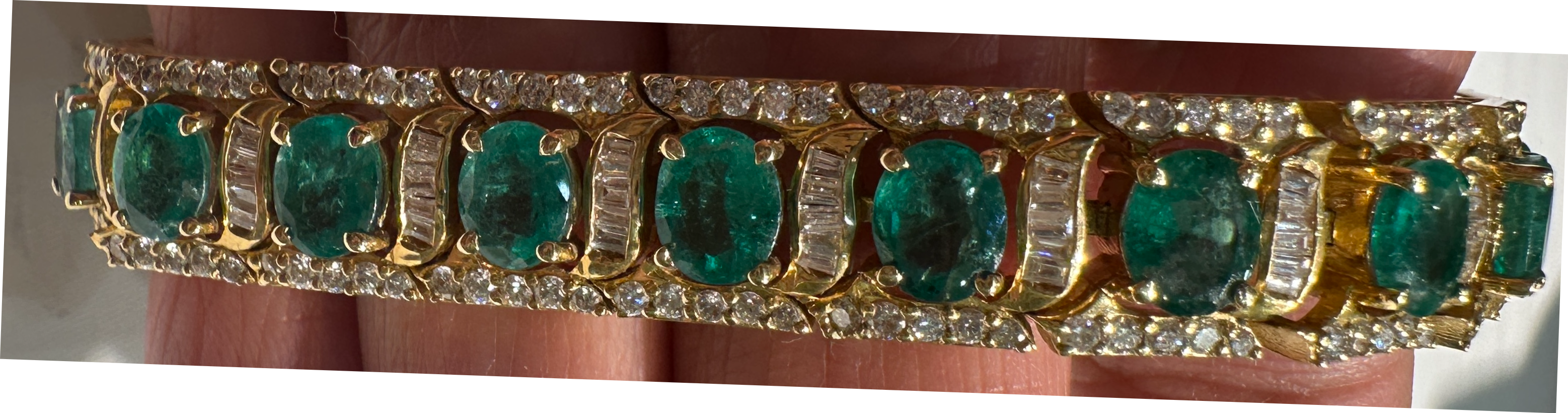 Beautifully crafted Zambian emerald bracelet with diamonds and solid 18K gold. Elegant jewellery for every occasion