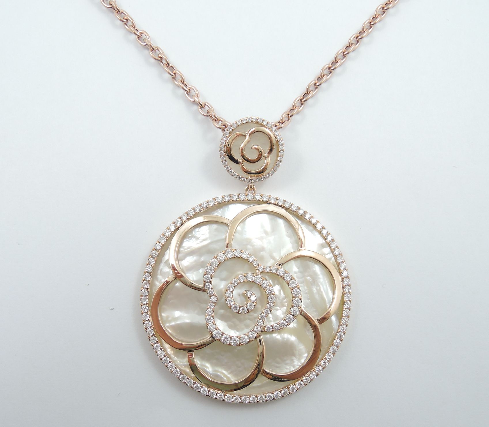 18K GOLD DIAMOND NECKLACE W/ MOTHER OF PEARL