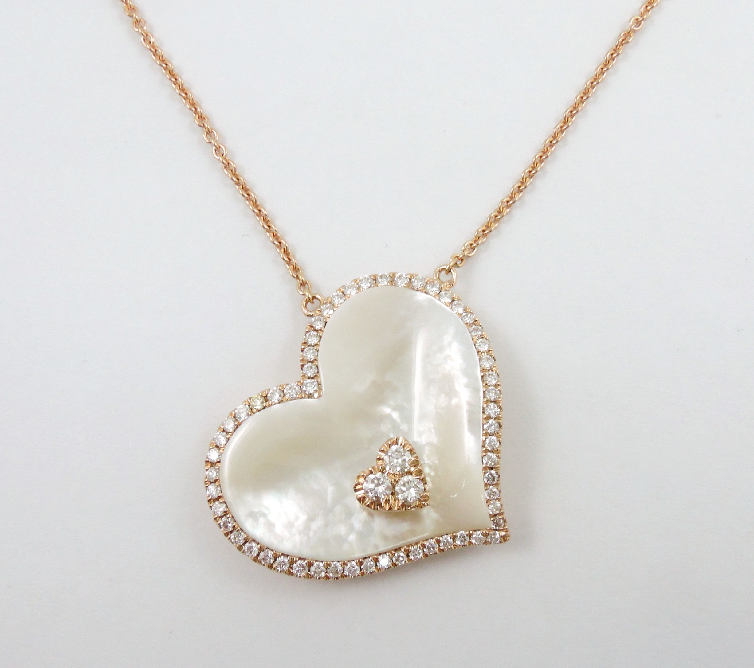 18K GOLD DIAMOND NECKLACE W/ MOTHER OF PEARL