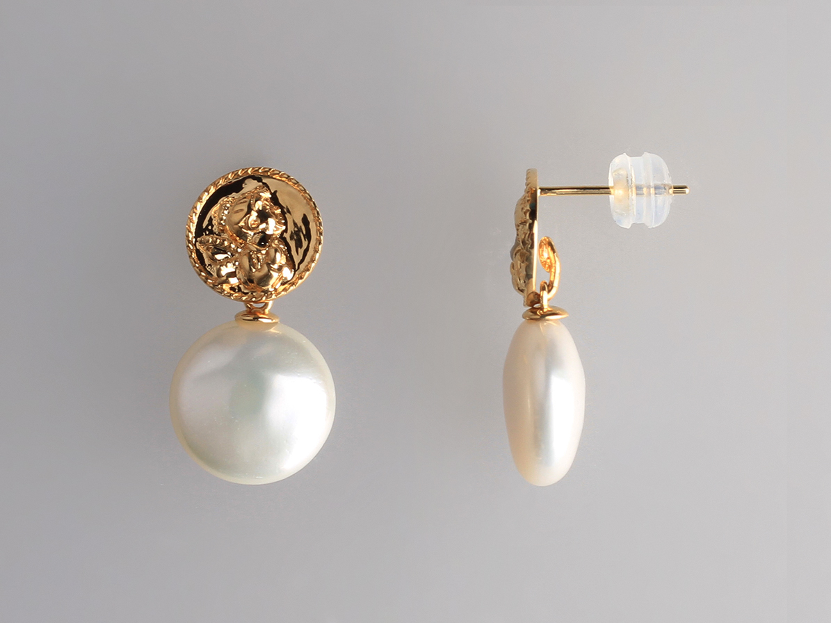 18K YELLOW GOLD EARRINGS WITH 11.5-12MM COIN SHAPE FRESHWATER PEARL, WITH SILICON BACK