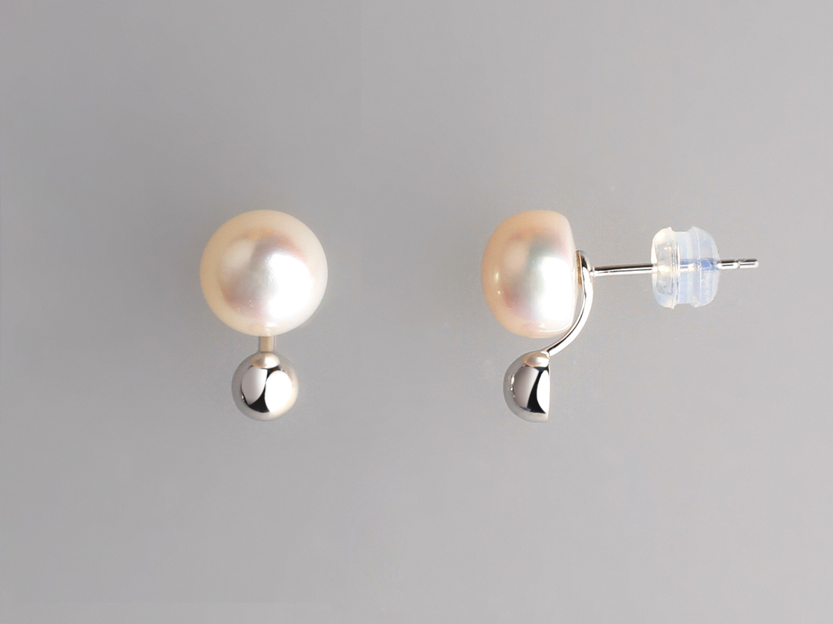 18K WHITE GOLD EARRINGS WITH 8-8.5MM BUTTON FRESHWATER PEARL, WITH SILICON BACK