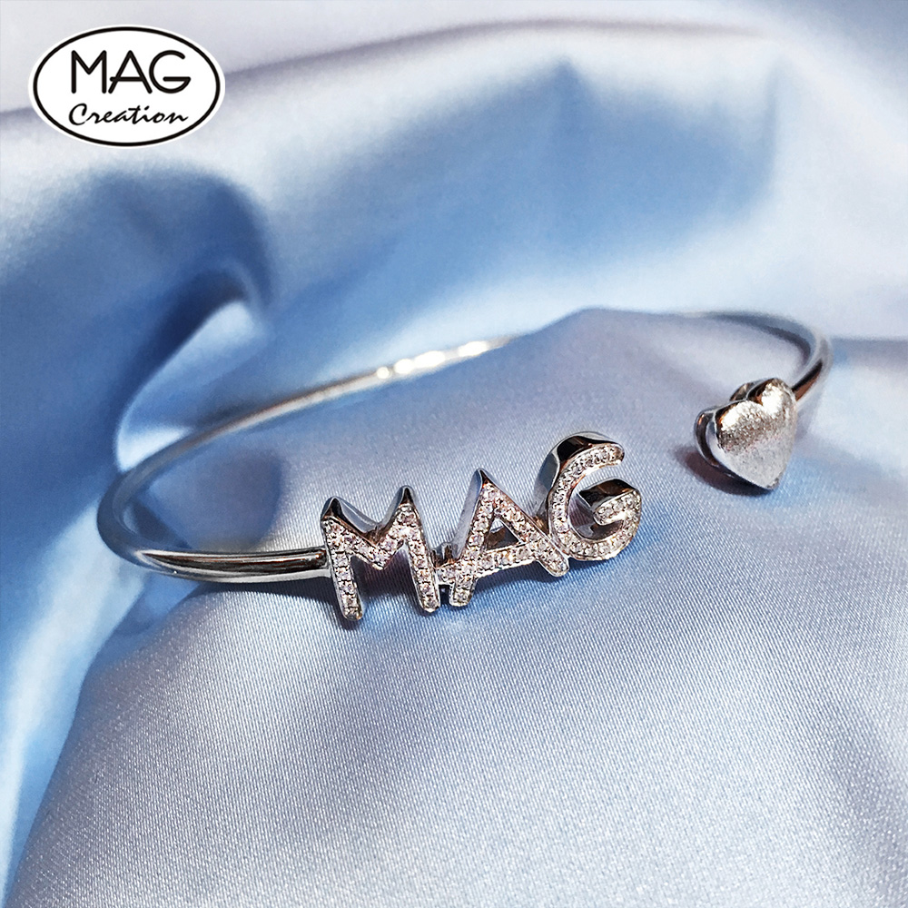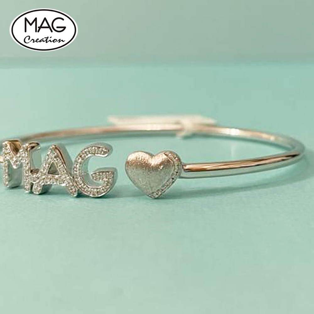 Store Memory 18K White Gold with 3 Letters Heart Natural Diamond Bangle