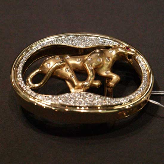 Shown here is an exquisite belt buckle that is designed for successful men. This delicate 18k gold buckle features a horse design in the middle and is further adorned by diamonds, making this a very attractive item. Give your belt a touch of uniqueness and style with this buckle.