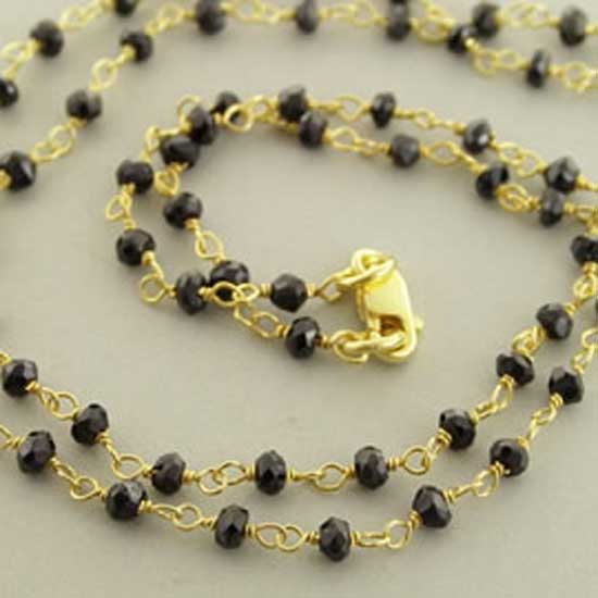 The 18K gold chain is alternated with precious stone beads in black for a touch of style. It is finely crafted with attention to details. This gorgeous 18K gold chain is a great accessory piece for accenting the wearer's unique style.
