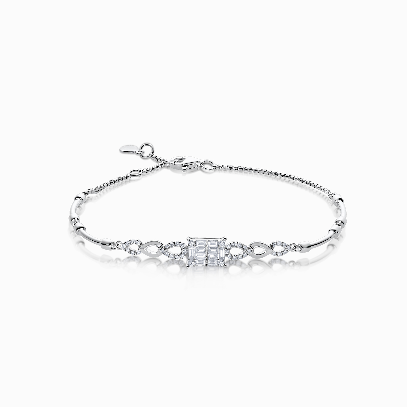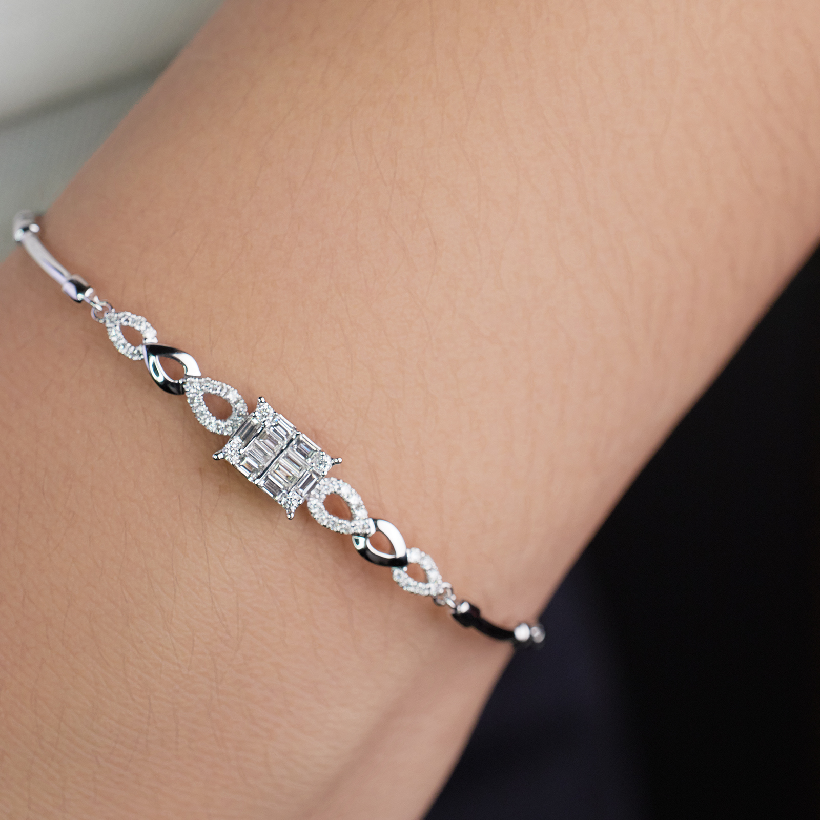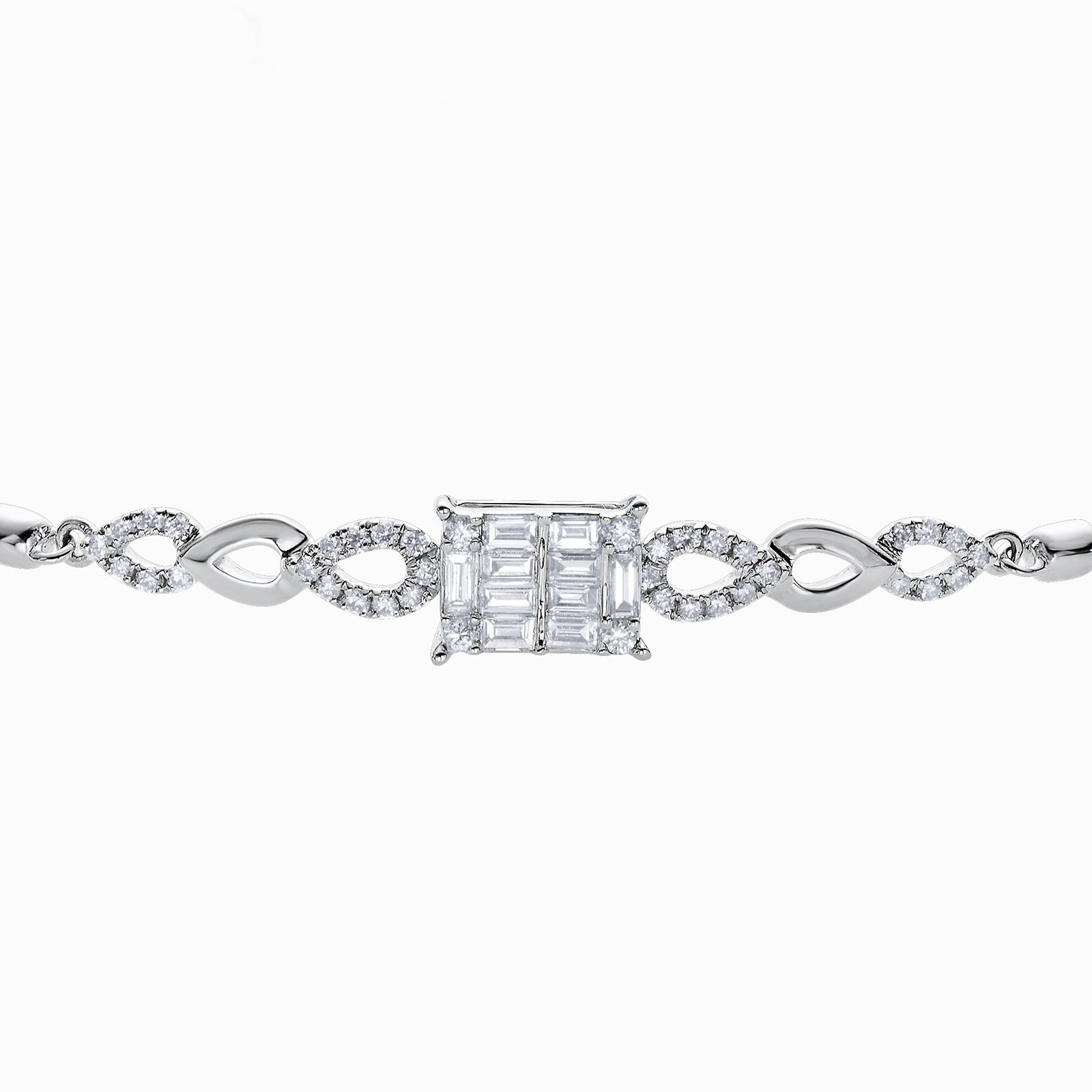 Mirage collection is using Round Cut and Baguette Diamonds to create a perfect Emerald diamond shape feeling to an illusion setting without unleashing the fire and sparkle of each stones.