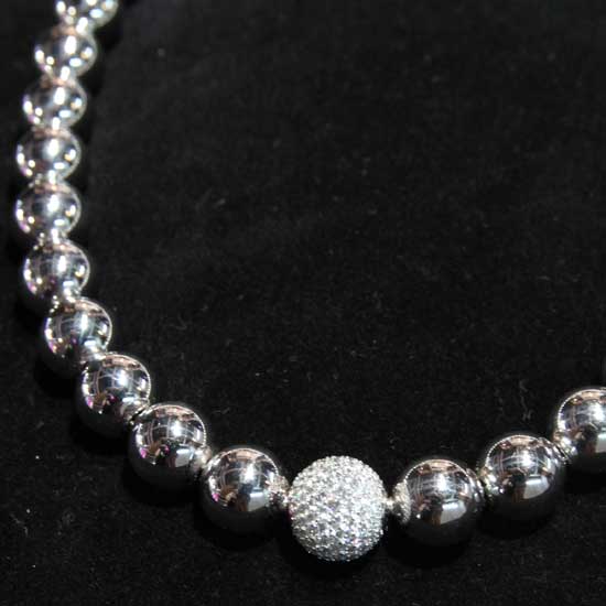 The high-end necklace captures your heart at the first glance with its elegant design. The 18K gold and diamond beads reveal the meticulous craftsmanship by their high luster and astounding sparkles. Each bead is perfect shaped to showcase a sense of unity. Express your sincere love to your special lady by presenting her with this 18K gold diamond necklace.