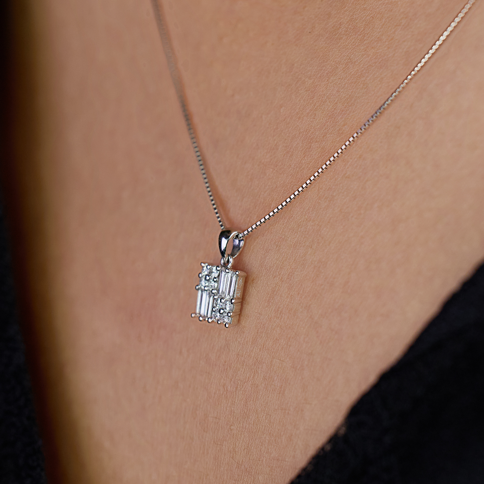 Mirage collection is using Round Cut and Baguette Diamonds to create a perfect Emerald diamond shape feeling to an illusion setting without unleashing the fire and sparkle of each stones.